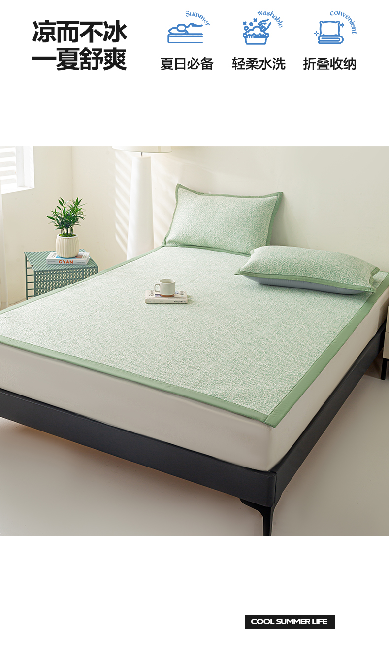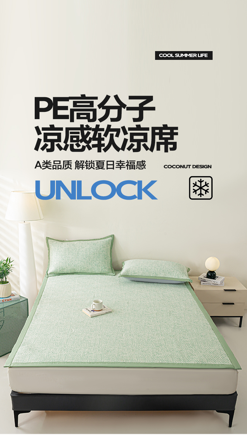 帅露家纺 2026新款A类PE高分子双泡软凉席席子 床席款双泡雪花-绿