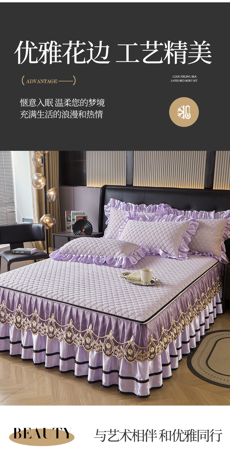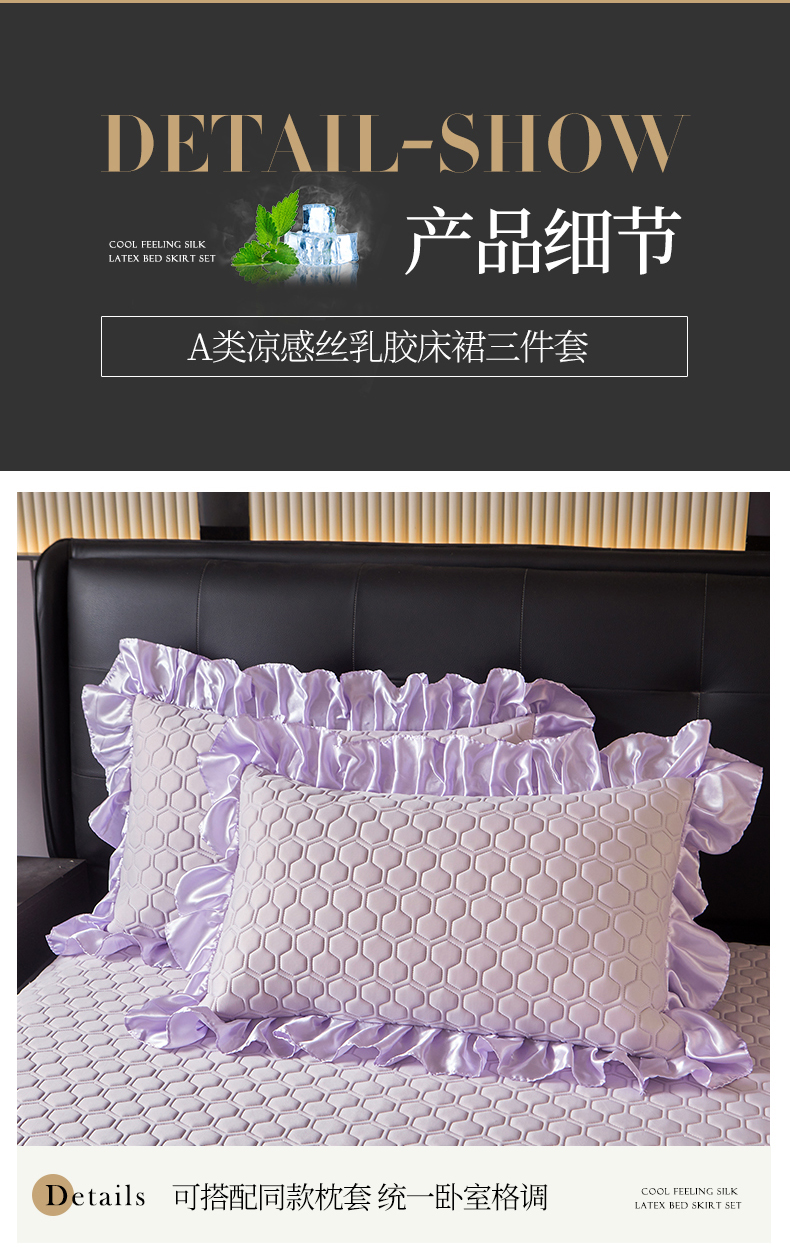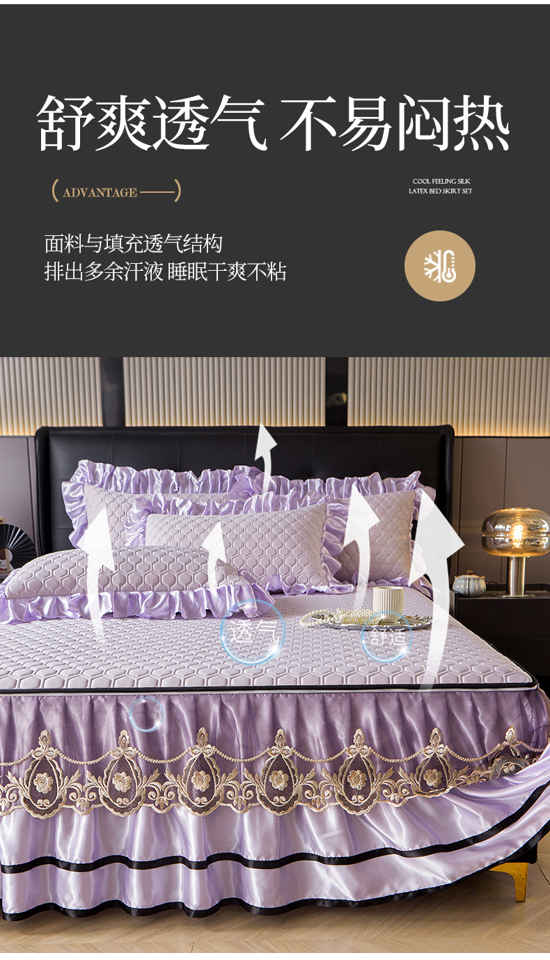 商品名称:好儿喜家纺 2026新款夏季高端乳胶凉席三件套可脱卸花边凉席-雅颂系列 雅颂-浅紫