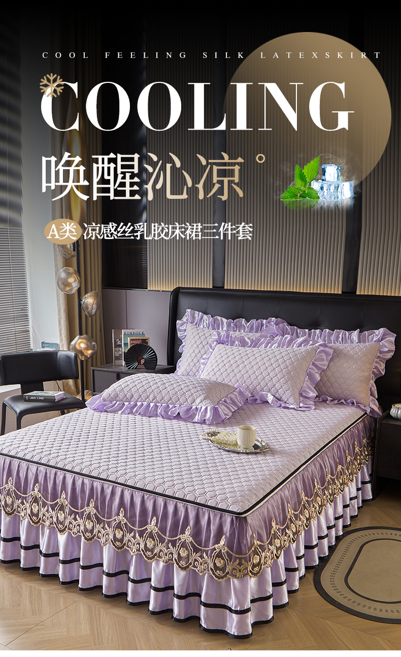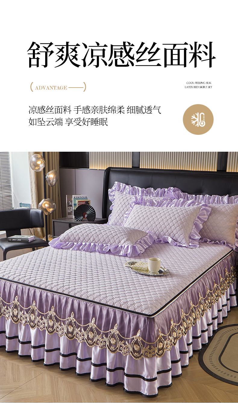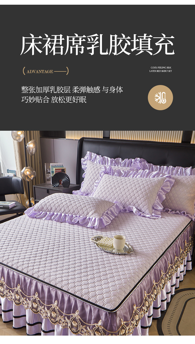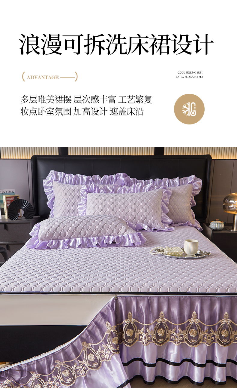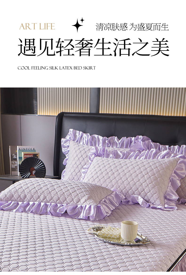 好儿喜家纺 2026新款夏季高端乳胶凉席三件套可脱卸花边凉席-雅颂系列 雅颂-浅紫