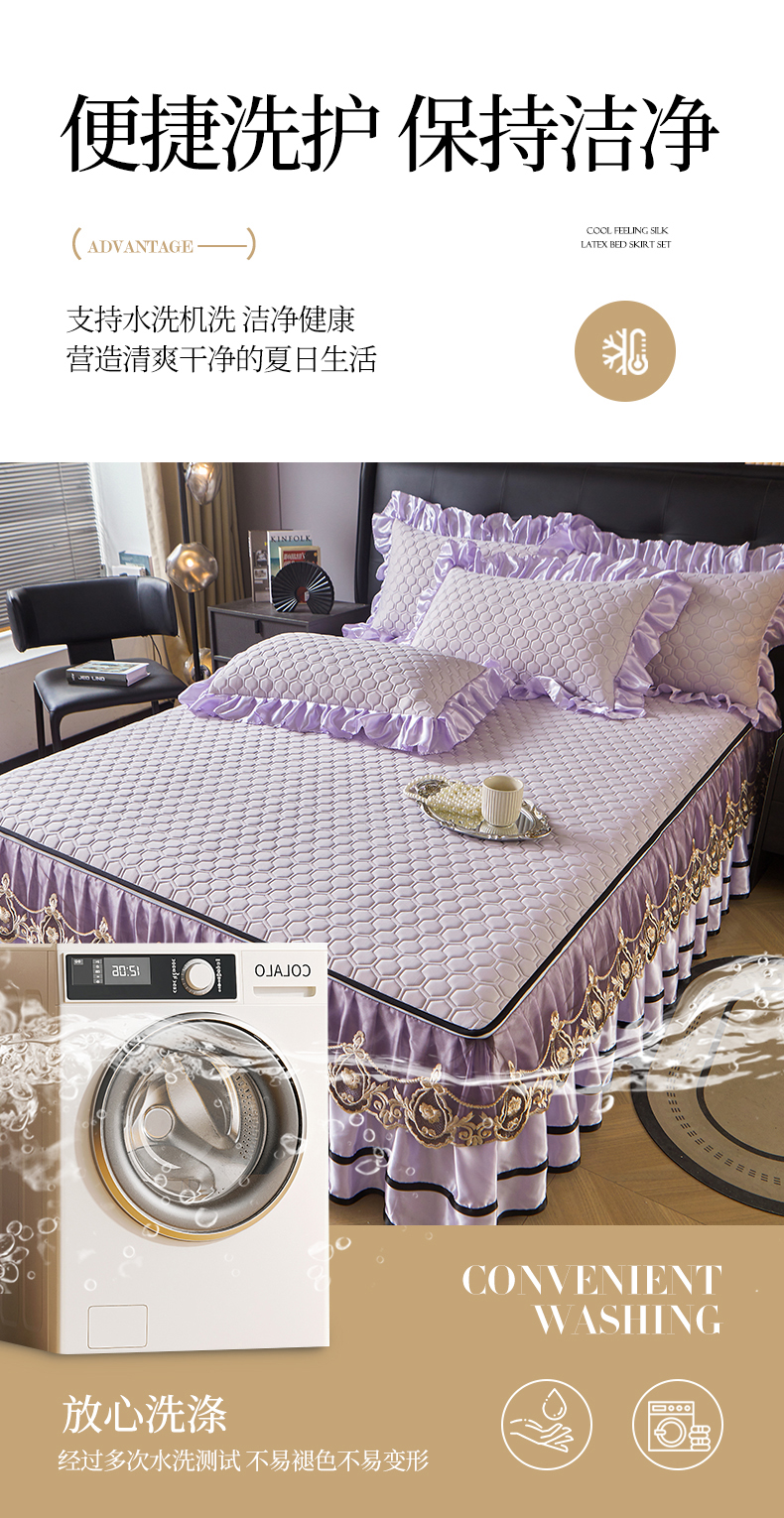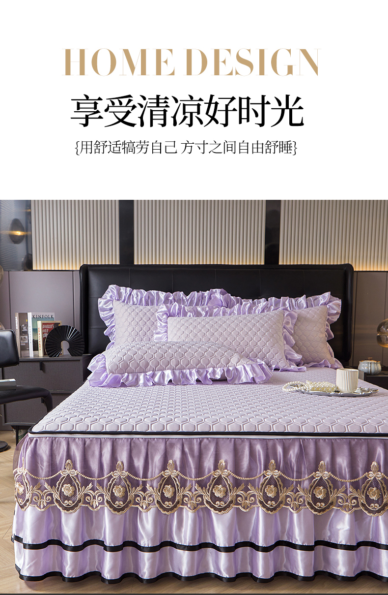 (总)好儿喜家纺 2024新款伊芙琳凉席床裙三件套,浅绿,橄榄绿,奶白,浅粉,浅蓝