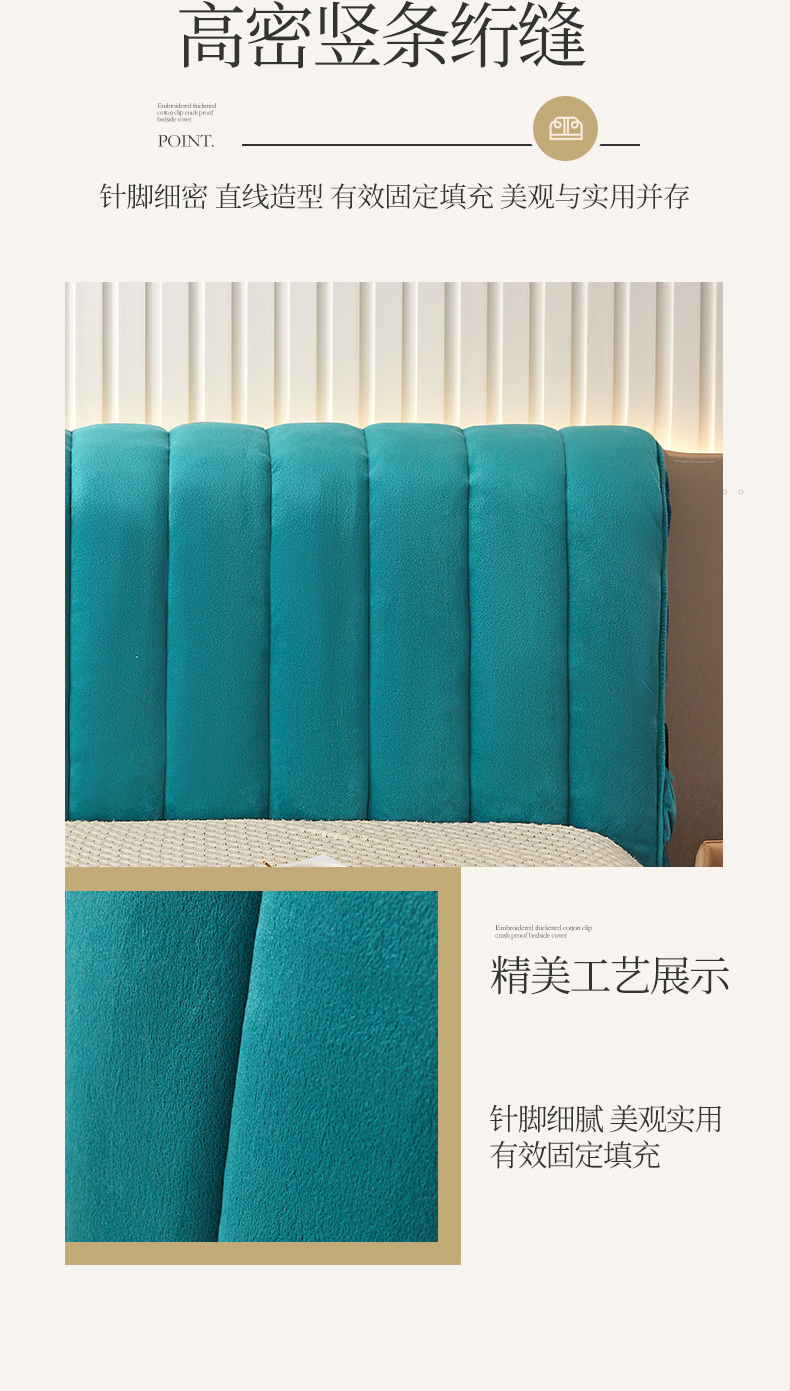 (总)情恒家纺 2026新款立体防撞双面加厚床头罩条形款