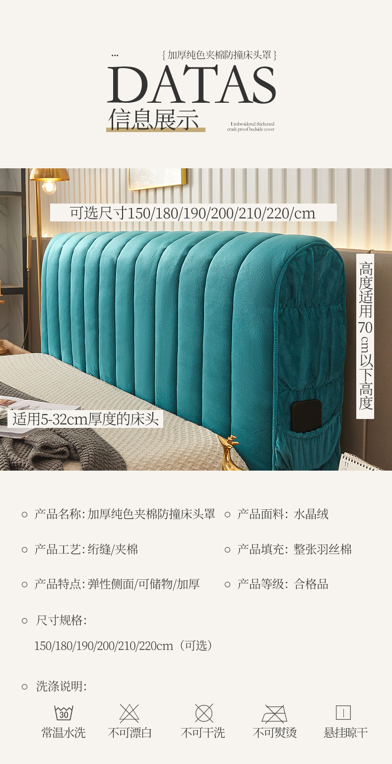 商品名称:(总)情恒家纺 2026新款立体防撞双面加厚床头罩条形款