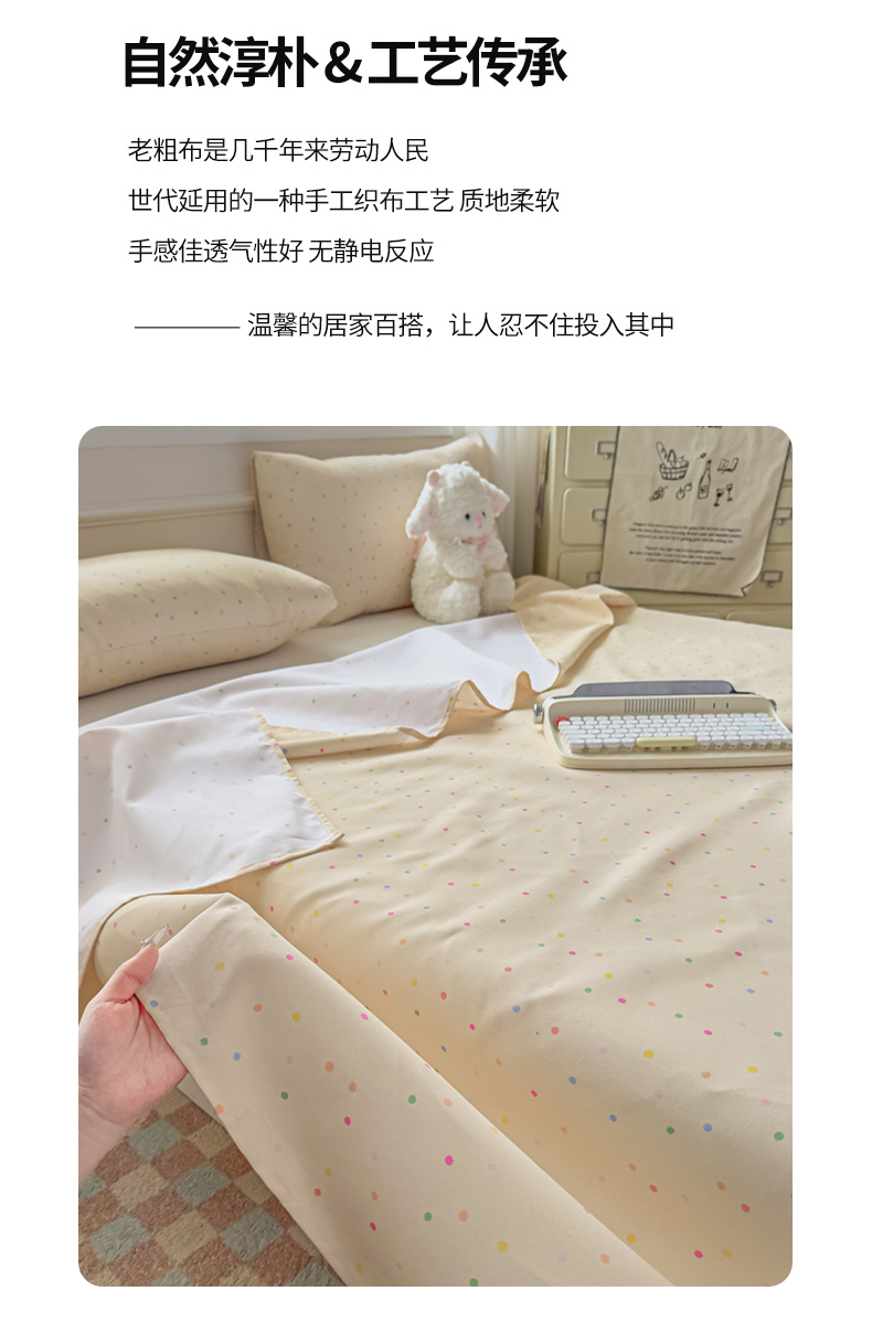 (总)爱彼家纺 2026新款热卖系列老粗布床单床单三件套凉席,小小兔,白朵花园,北望,彩虹波点,灿烂时光,草莓星芒,粉玫密语,粉兔花事,橄榄绿,格子粉,格子黄,格子灰,格子咖,格子蓝,格子绿,格子紫,花清舞绿,花田小狮,花条,桔灰细条,锦绣花舞,卡其,蓝白条,蓝小格,林间小兔,绿果花香,暖阳-天蓝格,棋盘格,青花江水,素林织棉,向往蓝条,向往米兰条,向往条绿,新清嫩绿,叶影,元气小象,竹小熊,紫罗,组合图仅展示