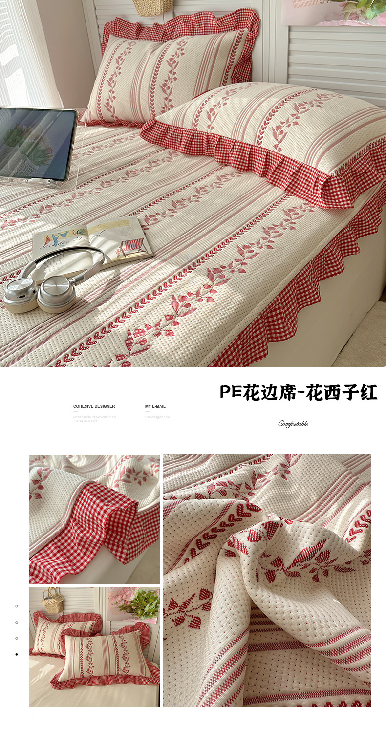 (总)桃子家居 2026新款A类韩版全棉色织花边工艺提花PE凉感凉席席子凉席三件套系列,组合图仅供展示不可下单,PE花边席-采薇粉,PE花边席-采薇灰,PE花边席-采薇蓝,PE花边席-花西子红,PE花边席-花西子咖,PE花边席-花西子蓝