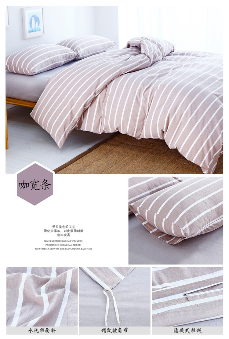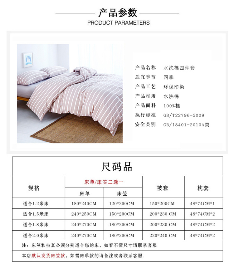 商品名称:玖玖爱家纺 水洗棉四件套床笠款 咖宽条