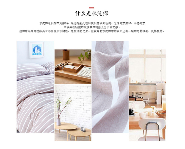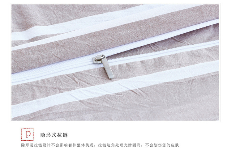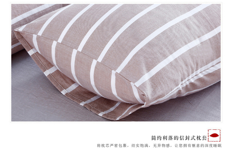 玖玖爱家纺 水洗棉四件套床笠款 咖宽条