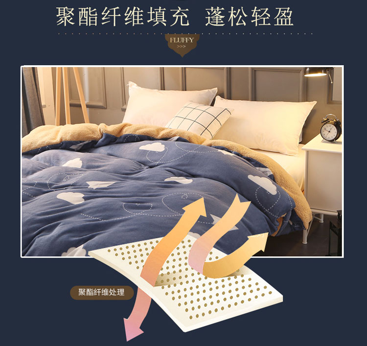 商品名称:米莱家纺 2018可拆卸法莱绒羊羔绒冬被 小云朵