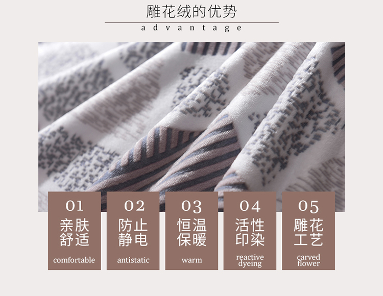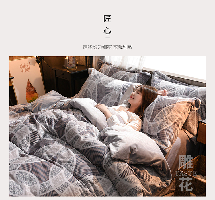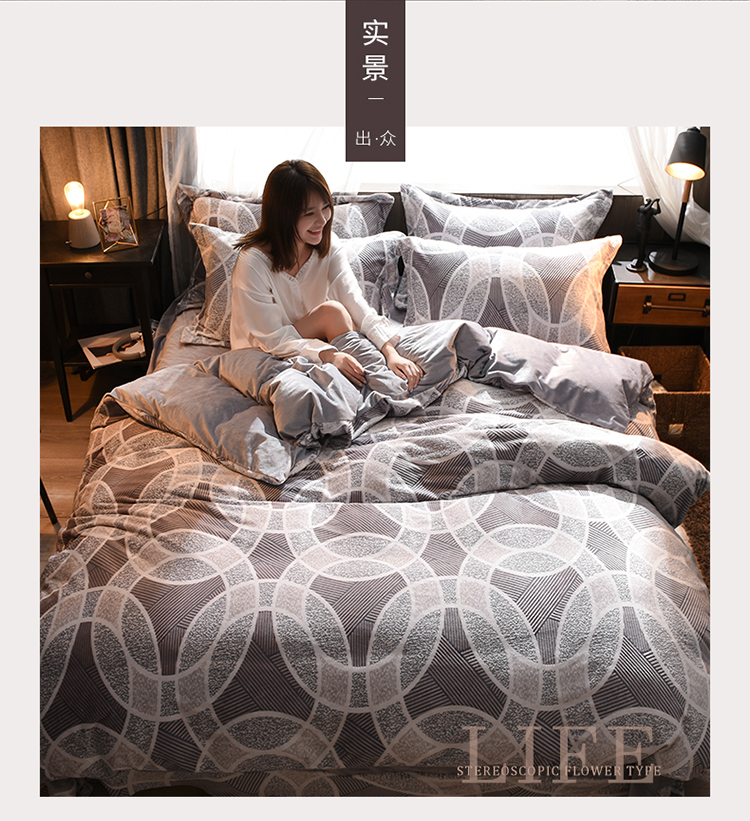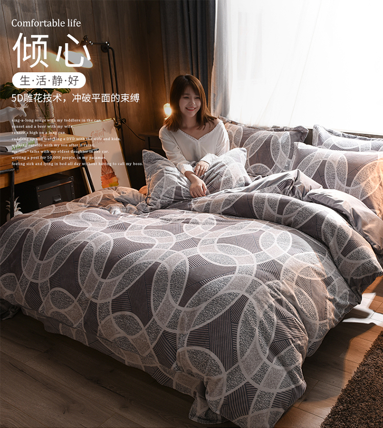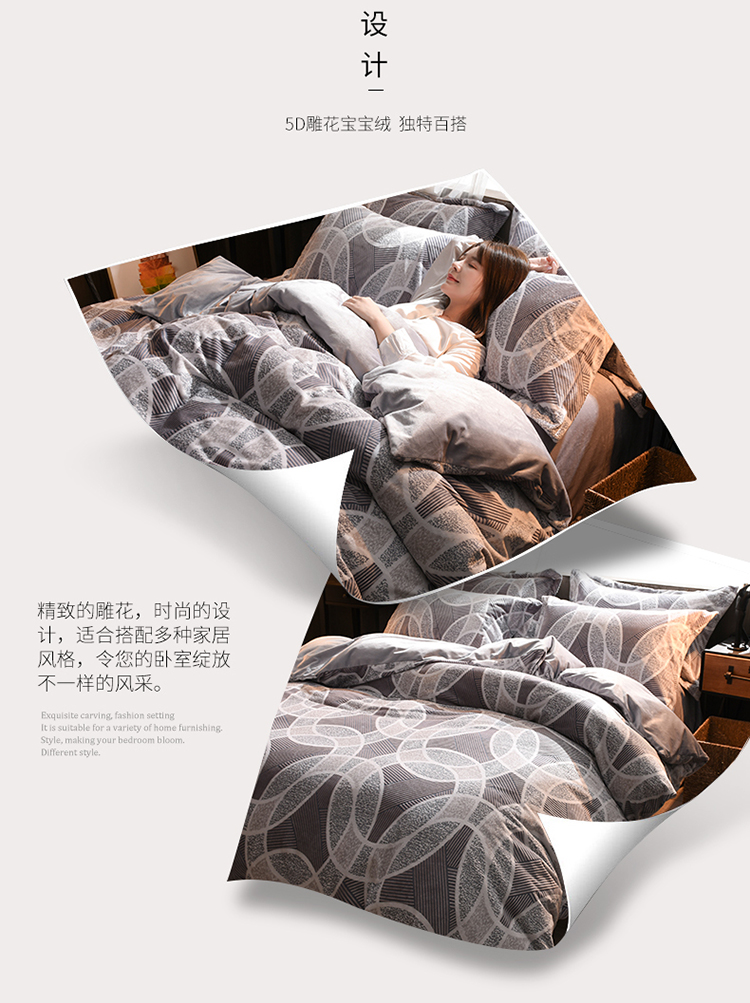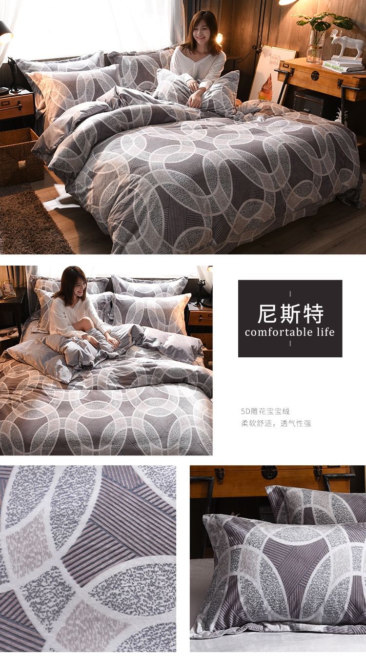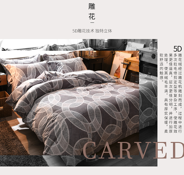 芃成家纺 5D雕花绒四件套 尼斯特随机花边