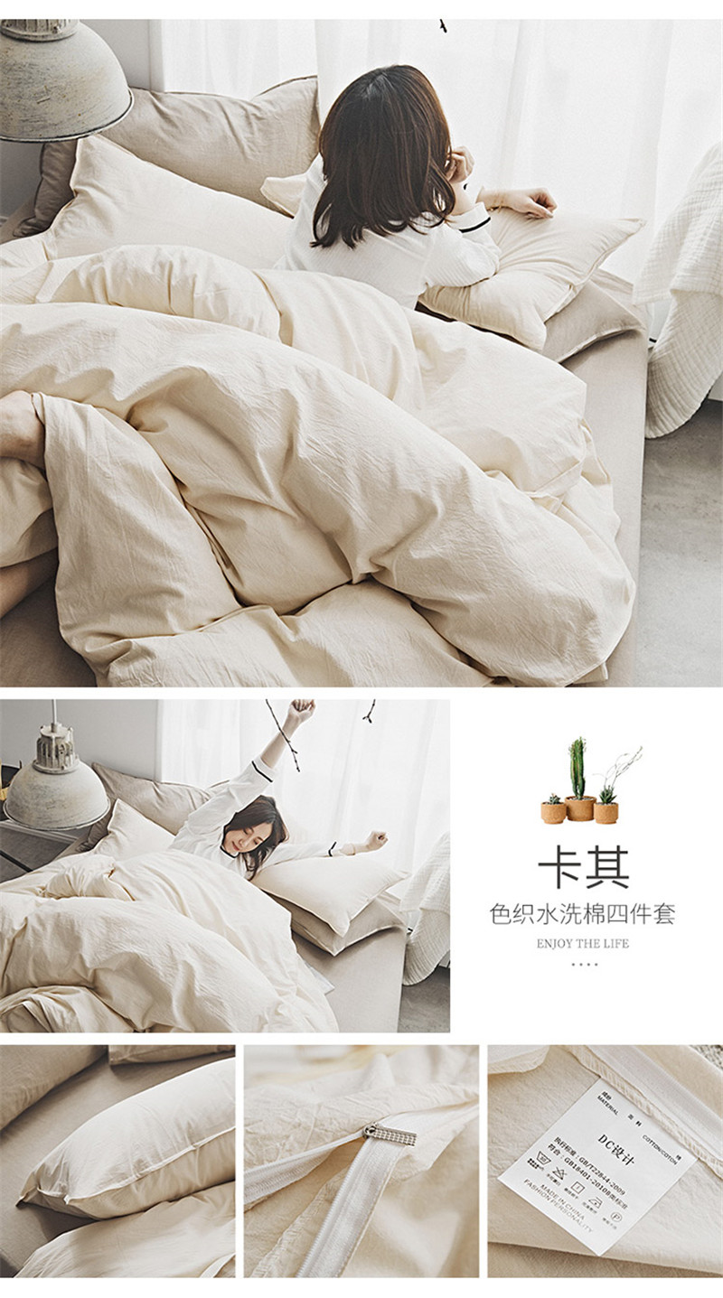 2018素色水洗四件套 卡其