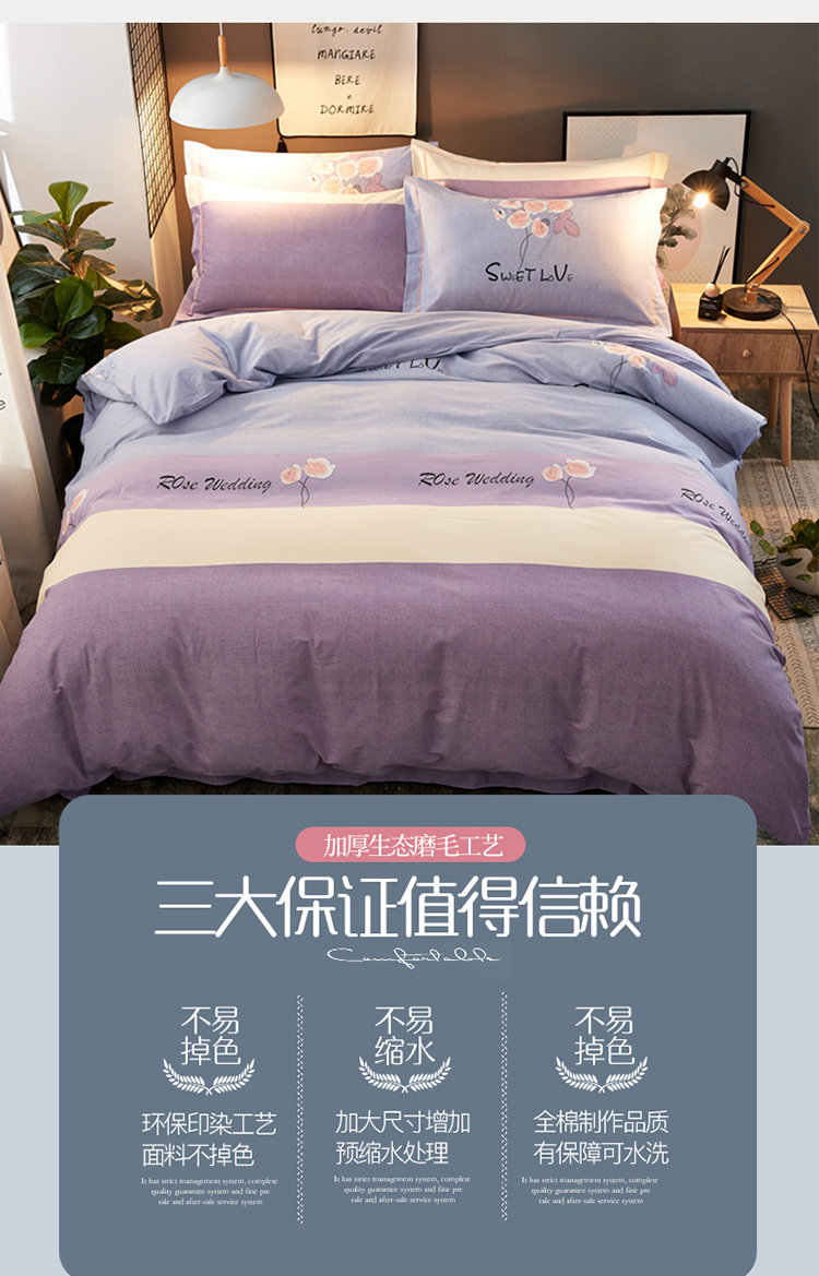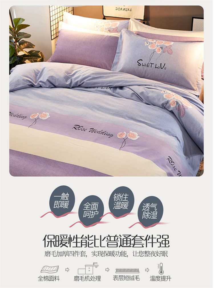 商品名称:雲归梦 2019新款多规格全棉加厚生态磨毛四件套 倾心玫瑰