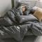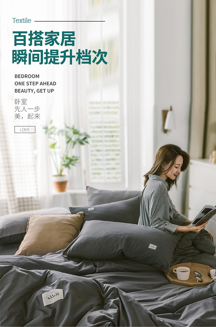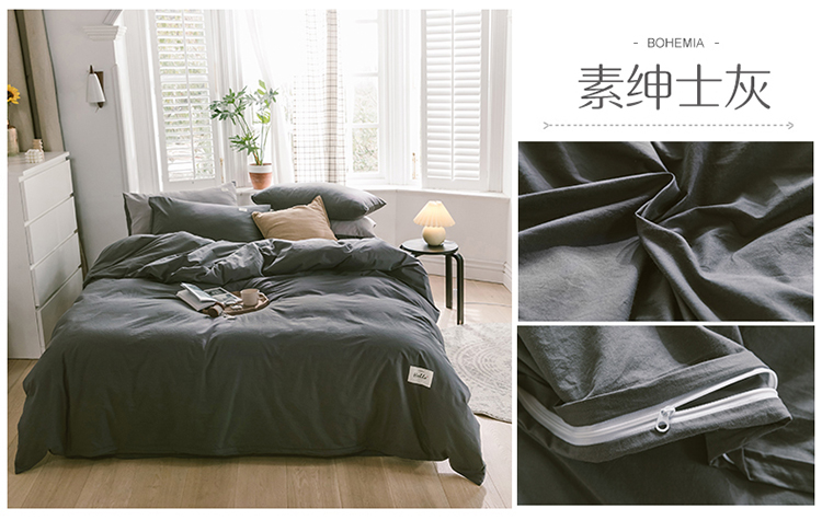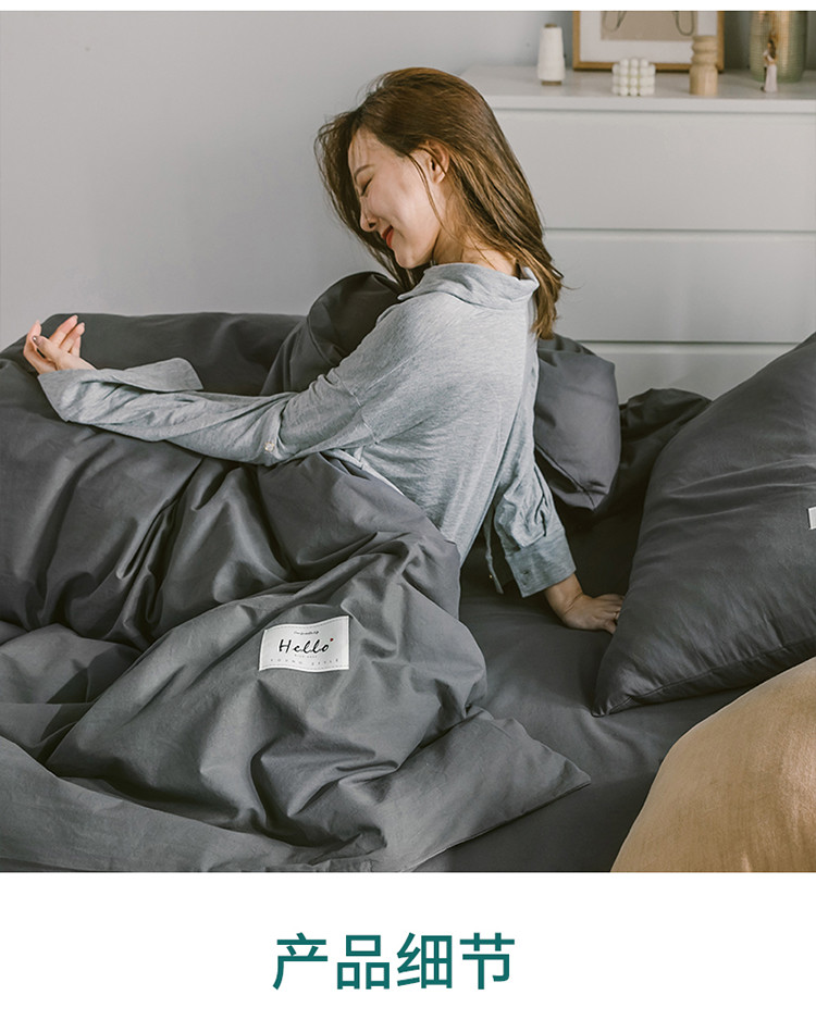 蓝巢家纺2020年春夏新品全棉加厚水洗棉双拼款四件套素绅士灰