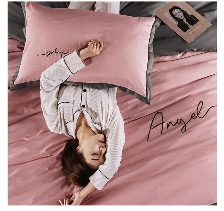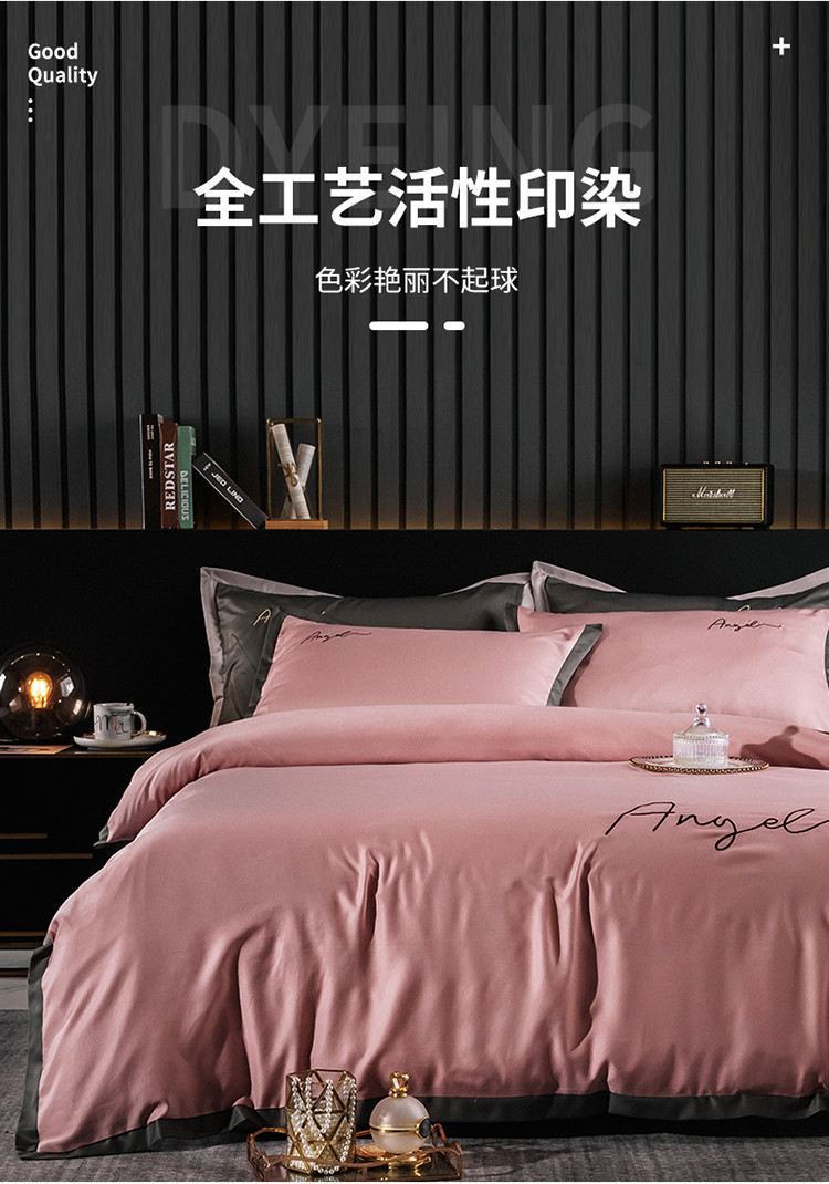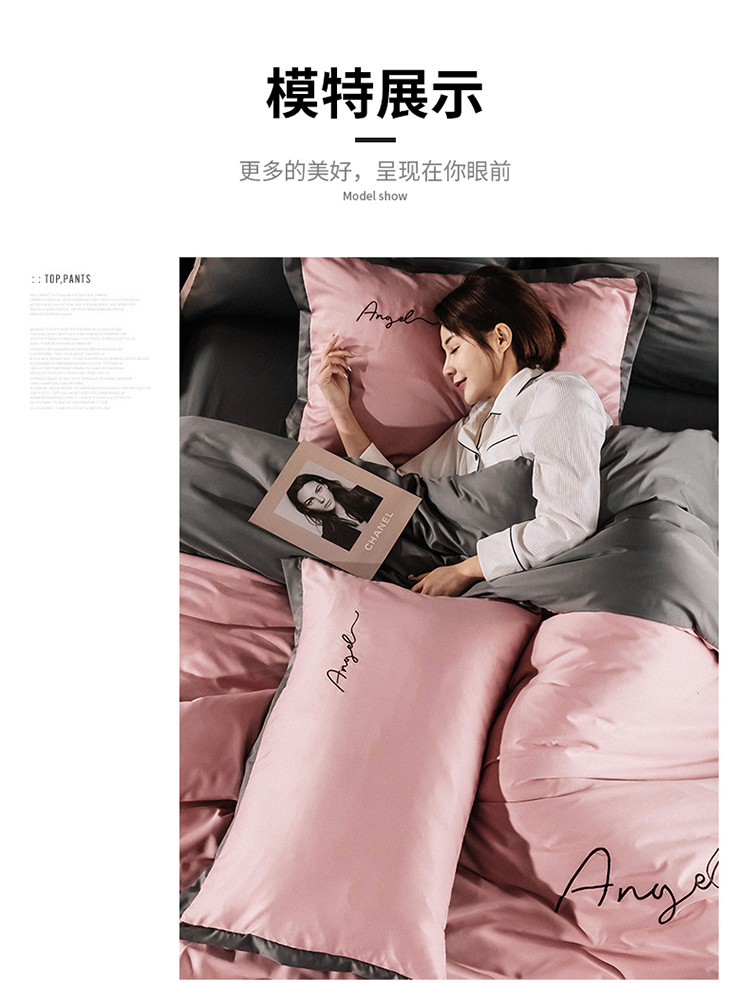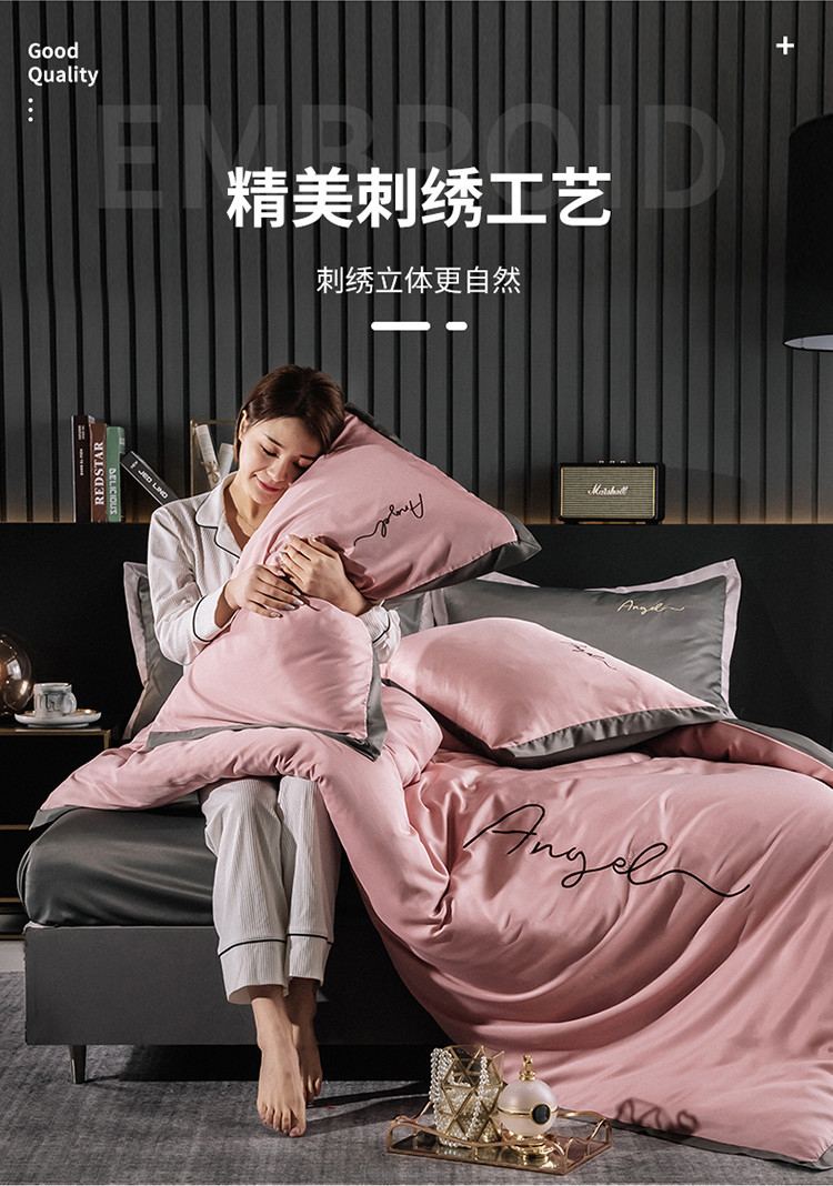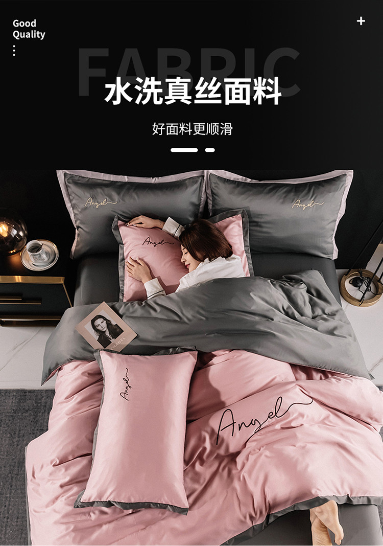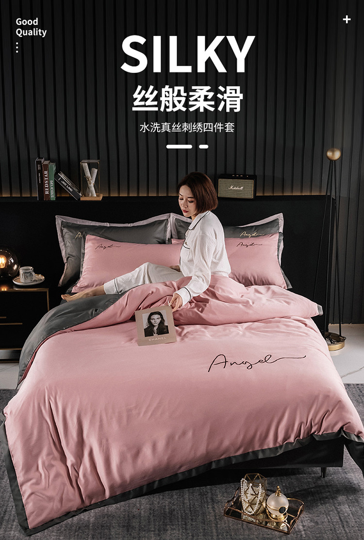 商品名称:芃成 2020新款水洗真丝天使宽边绣花四件套 天使-豆沙