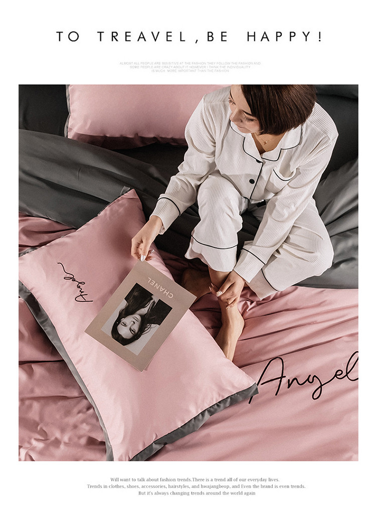 芃成 2020新款水洗真丝天使宽边绣花四件套 天使-豆沙