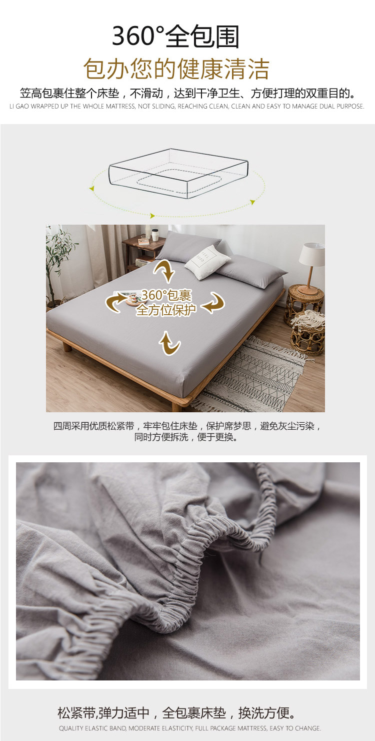 商品名称:佳梦达 2020新款全棉水洗纯色单床笠 雅士灰
