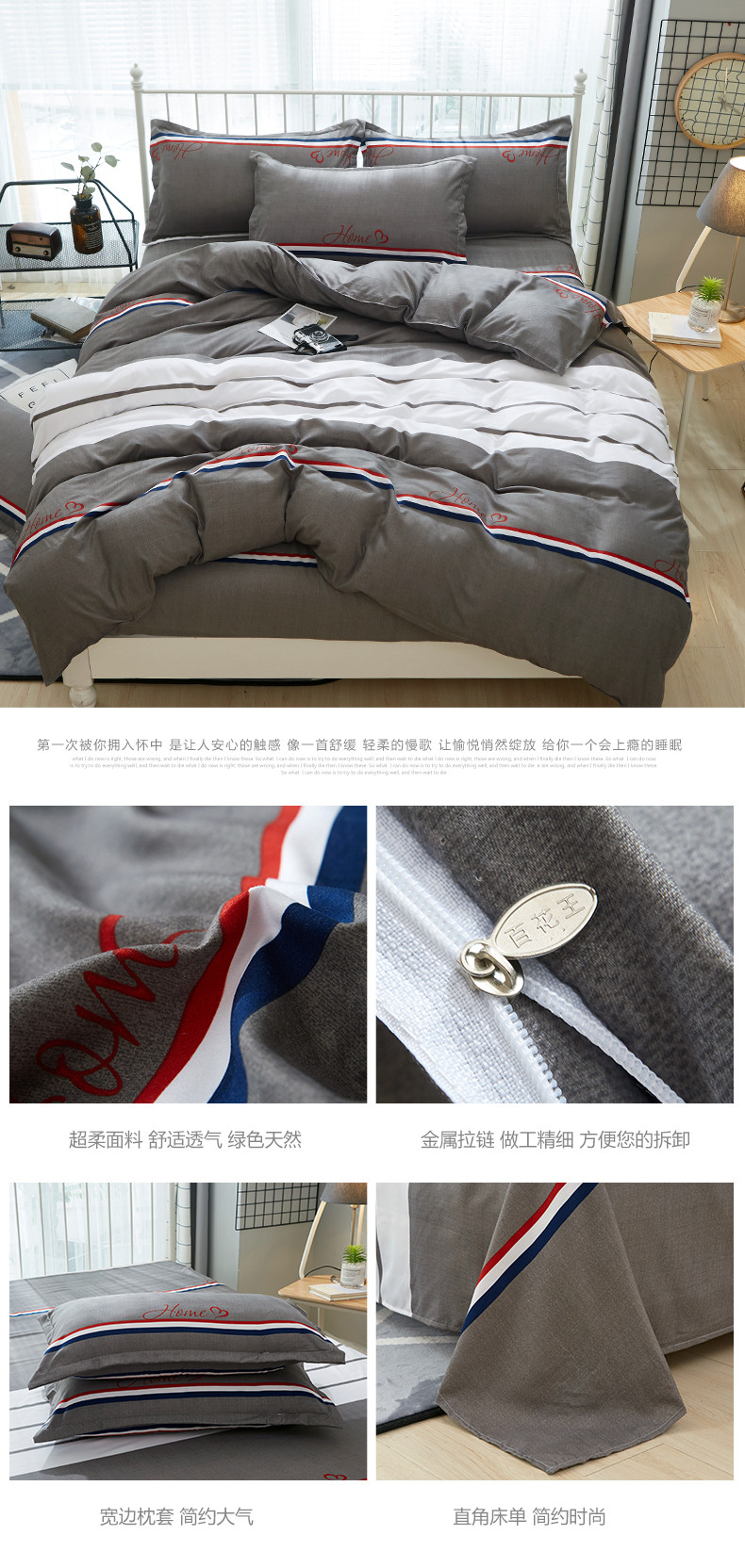 百花王 2021新款全棉绣花刺绣四件套 浅灰,浅灰