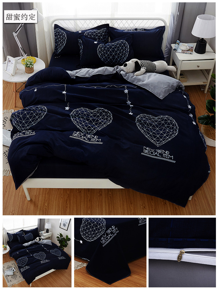百花王 2021新款全棉绣花刺绣四件套 深灰,深灰