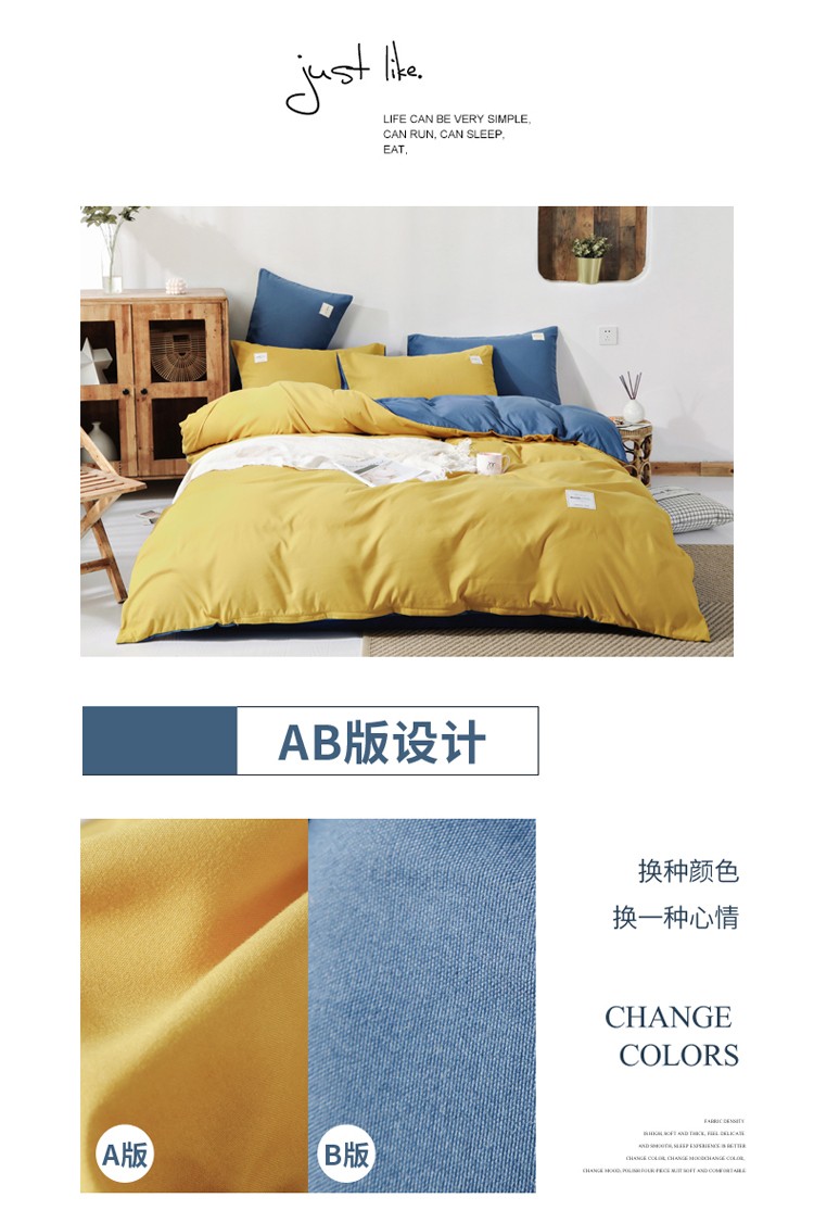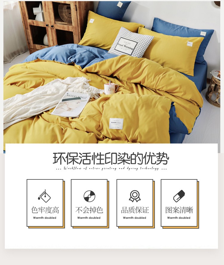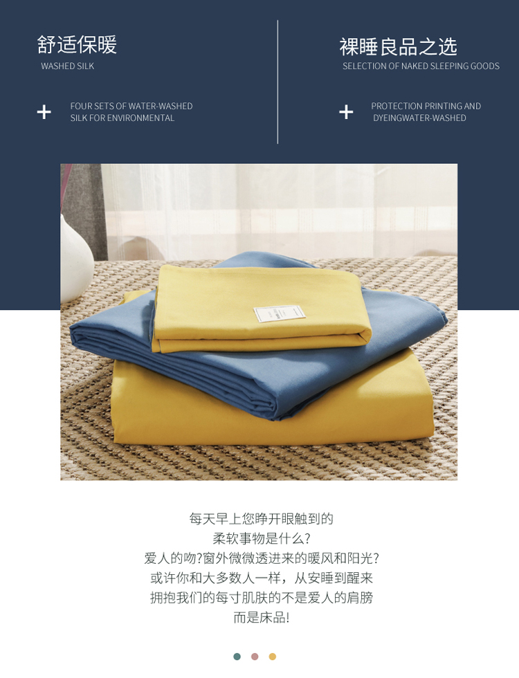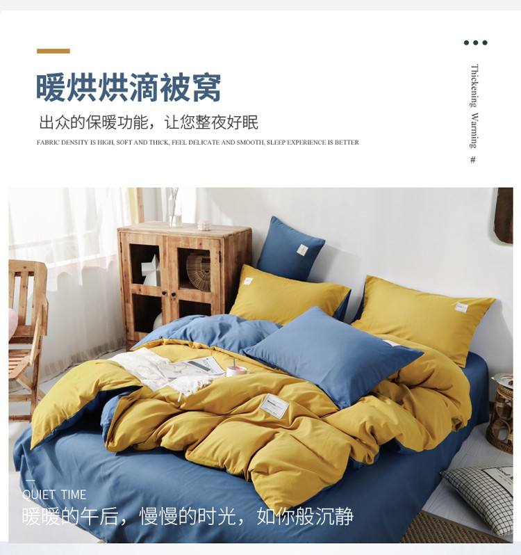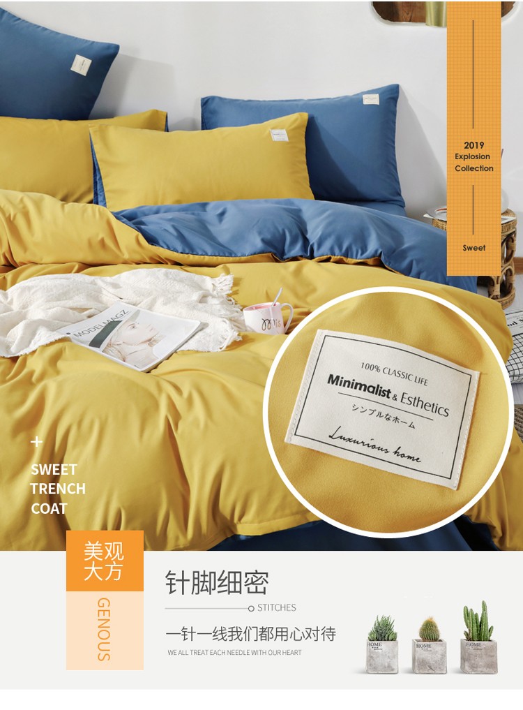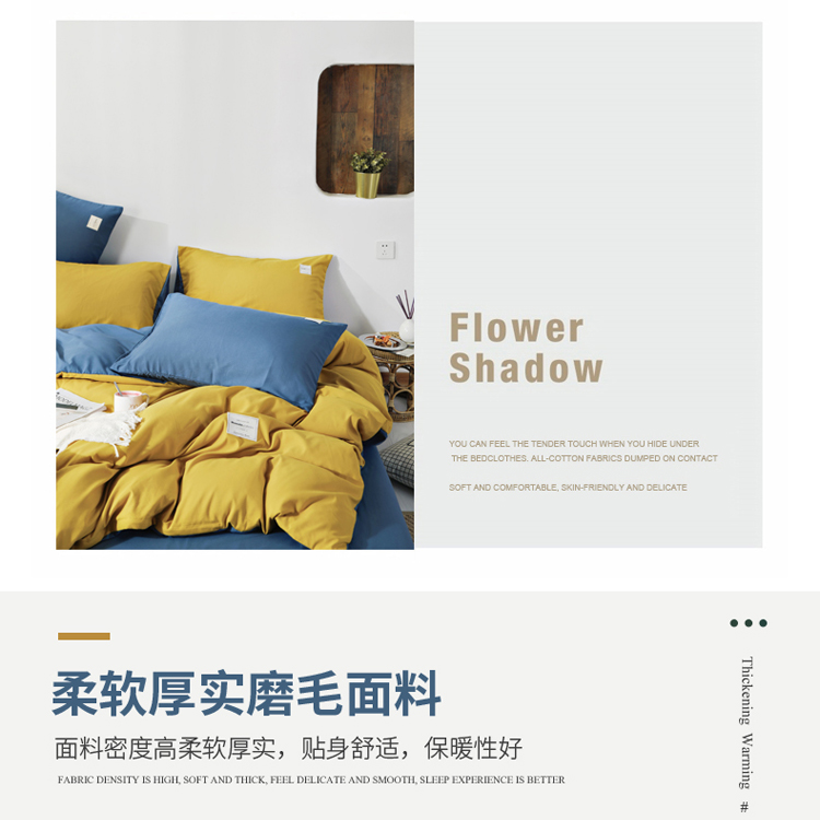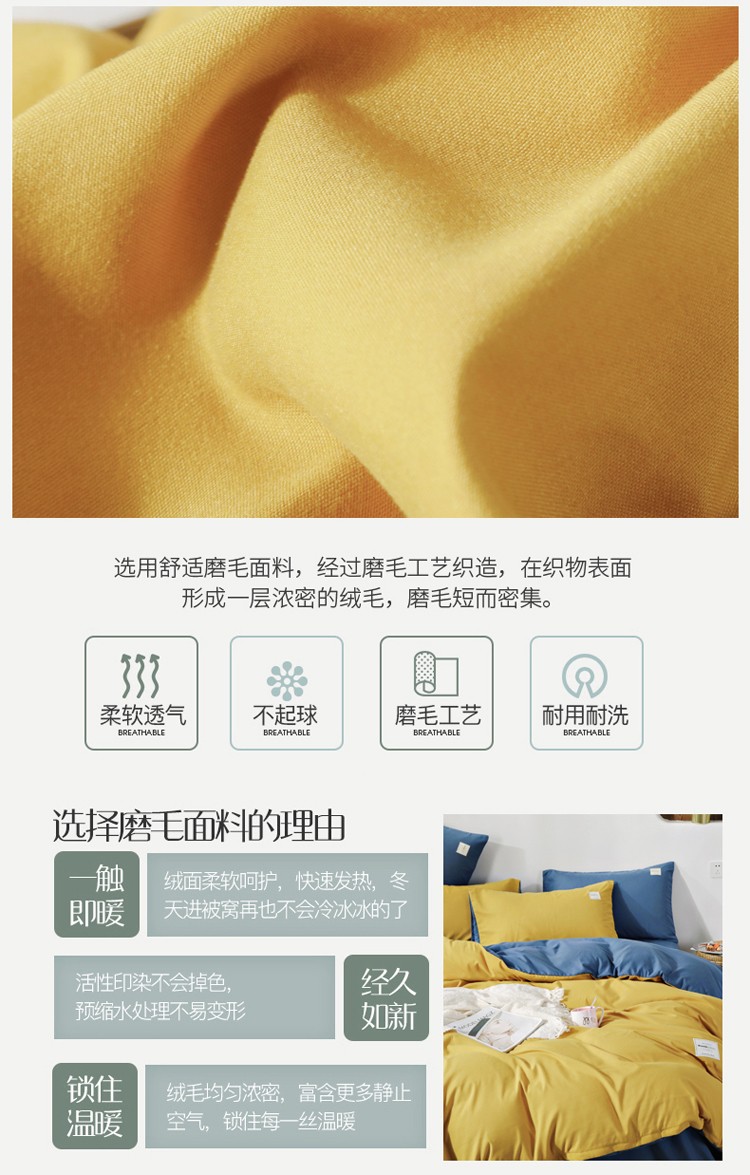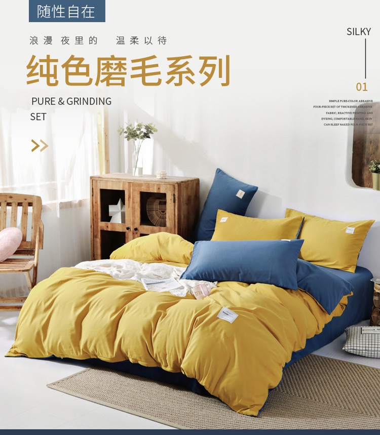 商品名称:米粒 2020新款纯色磨毛四件套 姜黄+兰