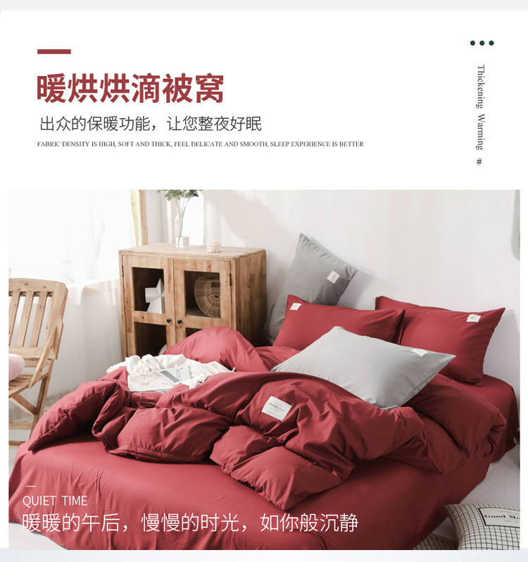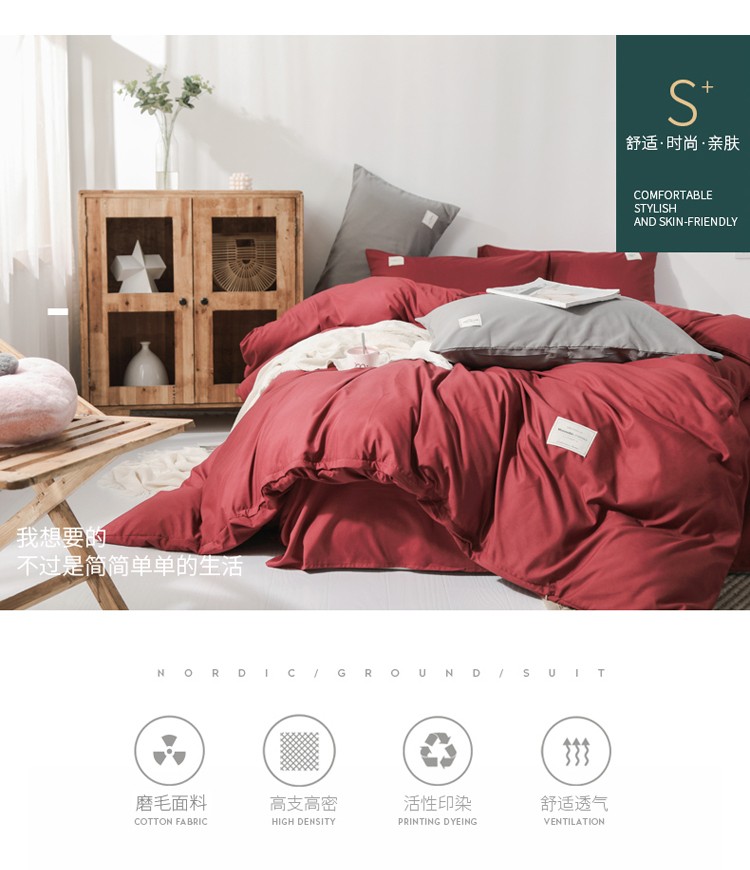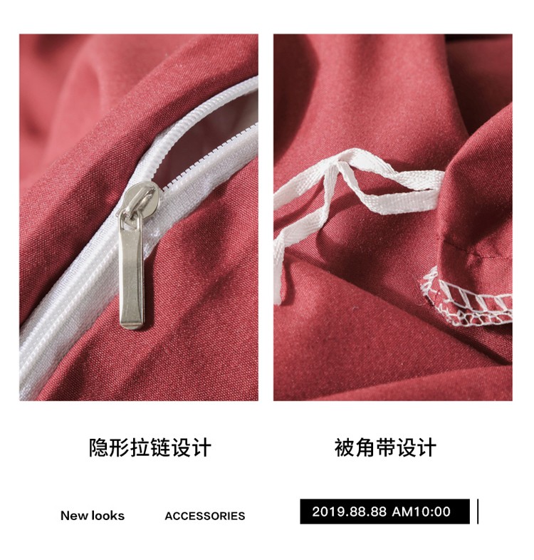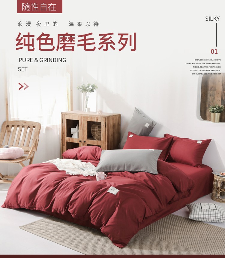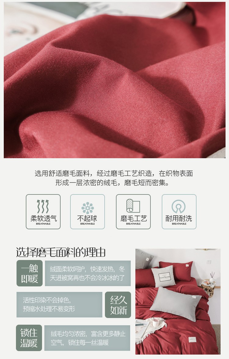 商品名称:米粒 2020新款纯色磨毛四件套 枣红