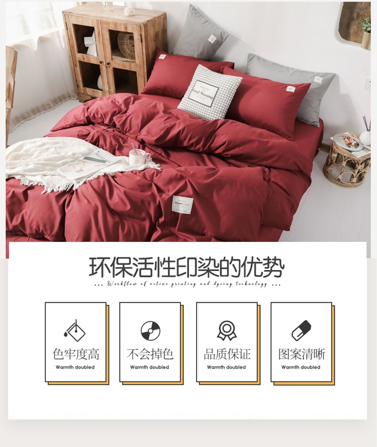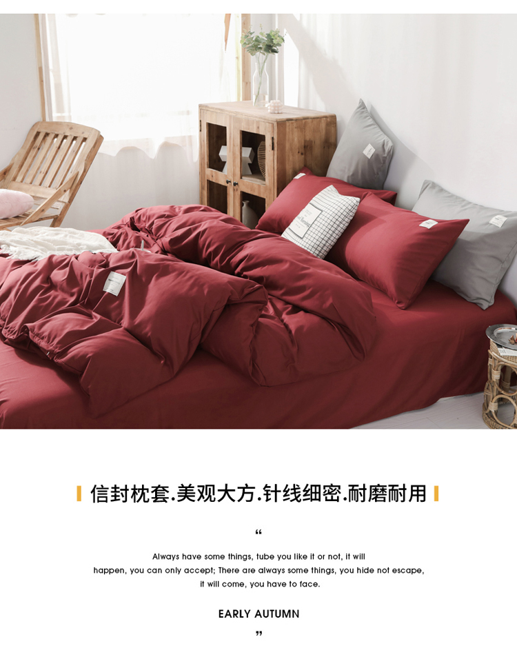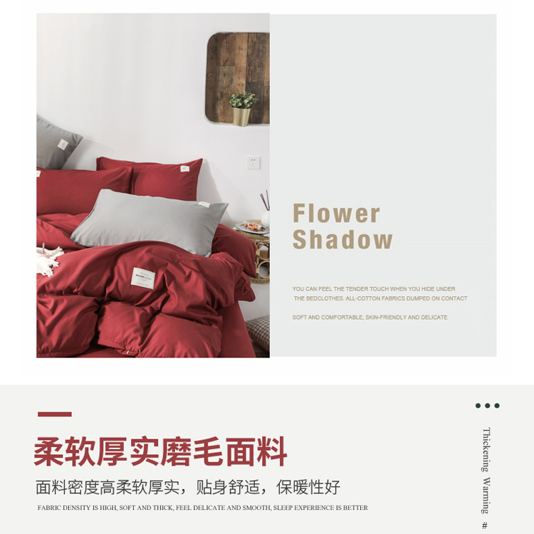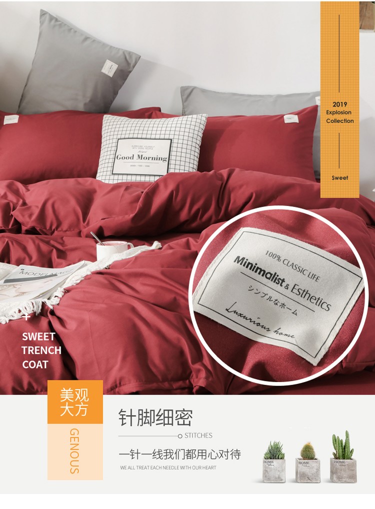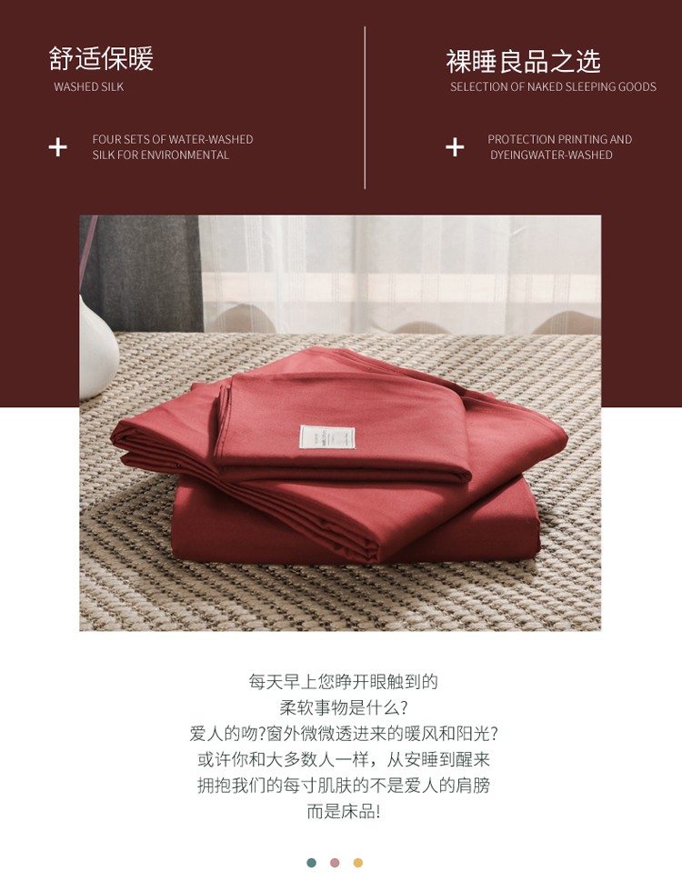 商品名称:米粒 2020新款纯色磨毛四件套 枣红