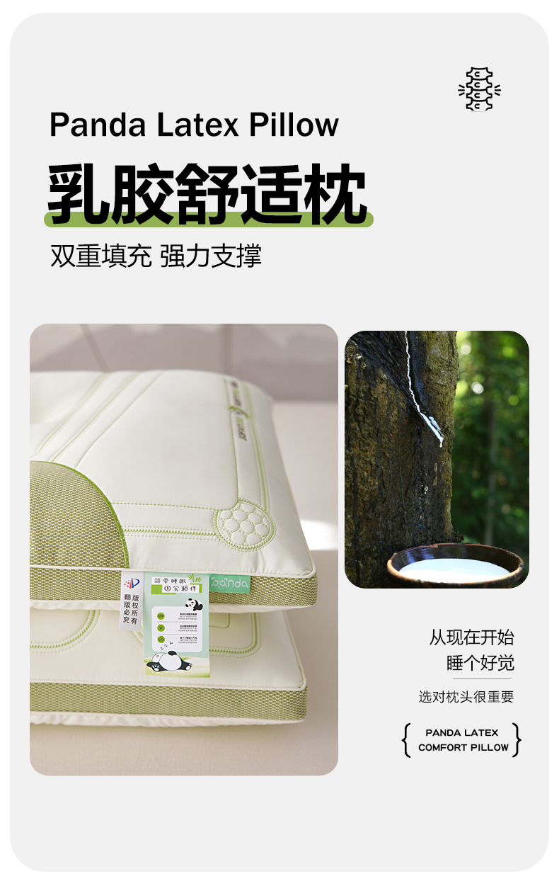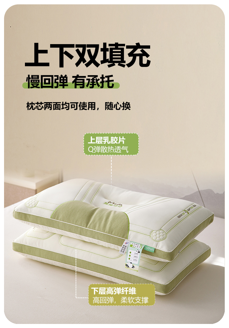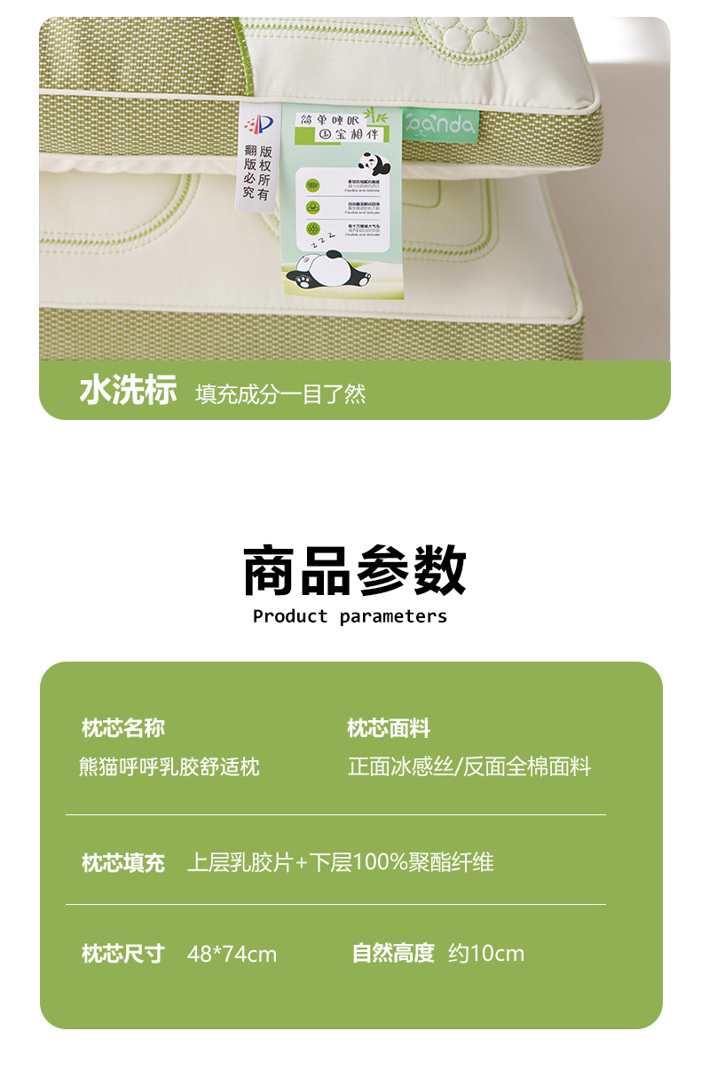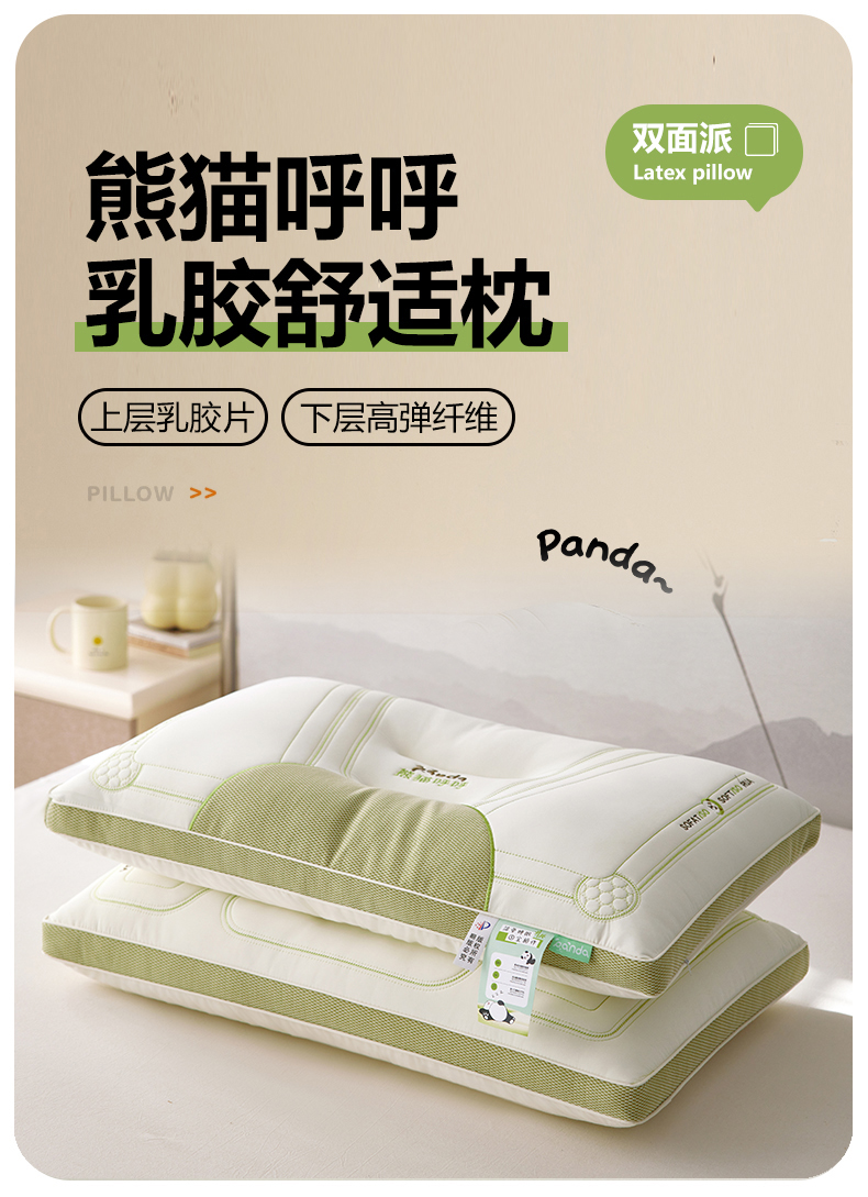 商品名称:(总)2024新款夏季凉感熊猫呼呼乳胶枕头护颈椎助睡眠成人枕芯家用枕头不塌陷