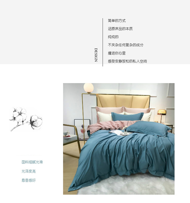 商品名称:十九色家纺 新款50*50撞色长绒棉高端埋线款全棉四件套 醉月