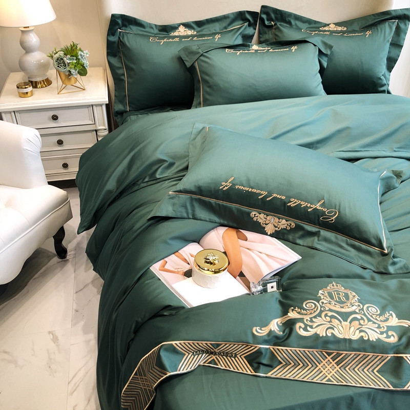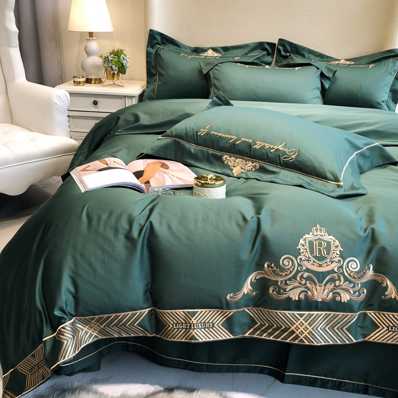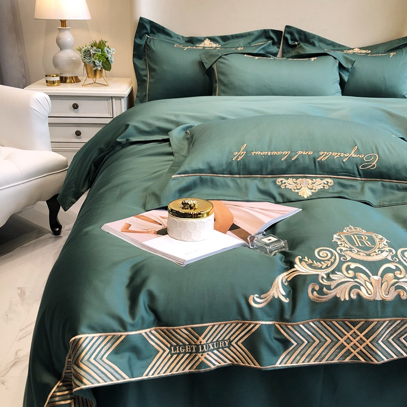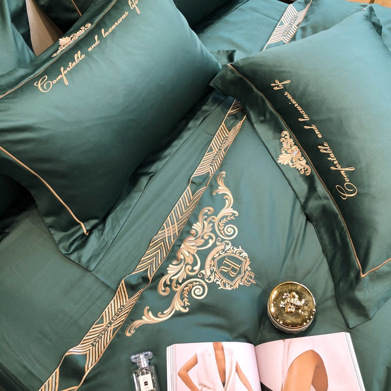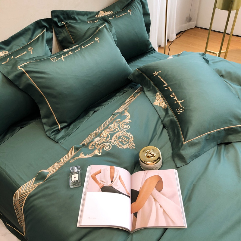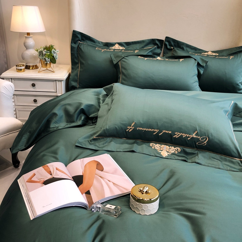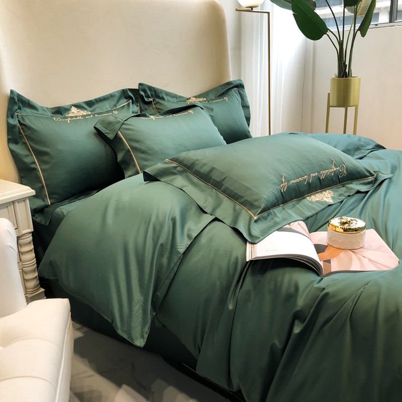 馨蕊家居 202160s双股埃及长绒棉维尼亚系列四件套翡翠绿