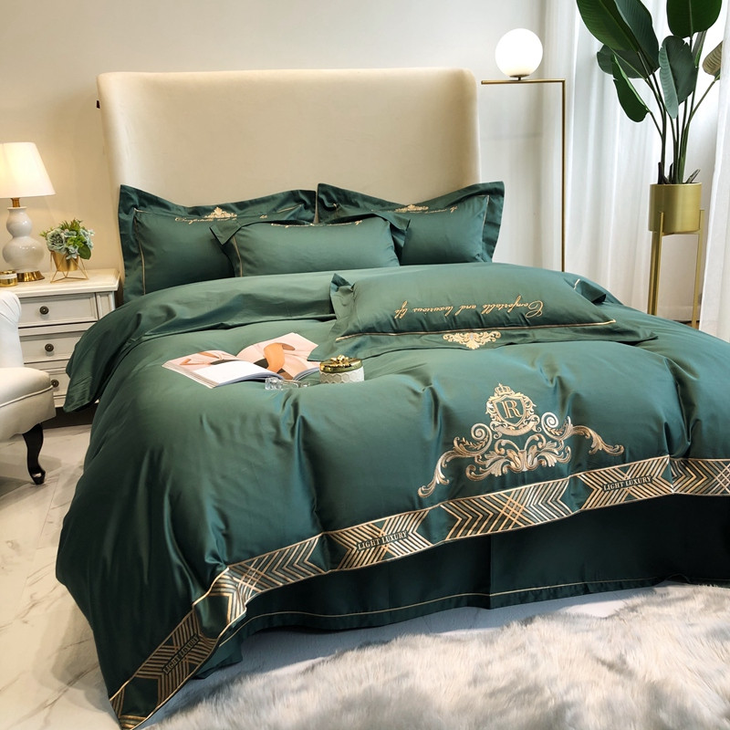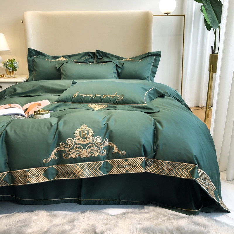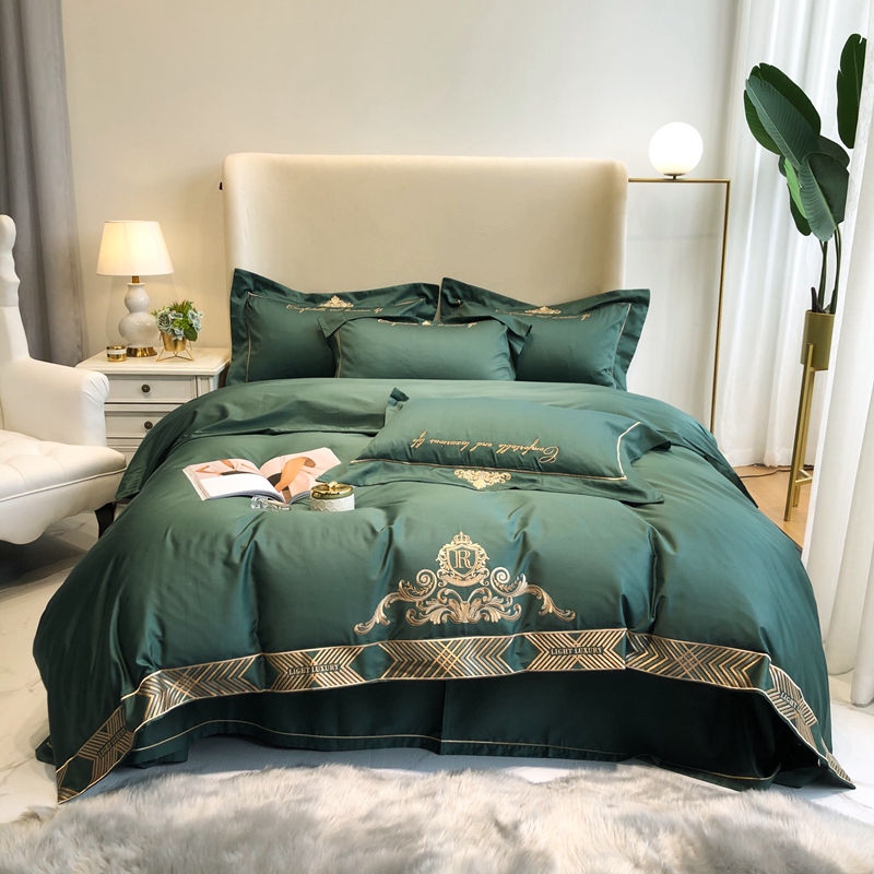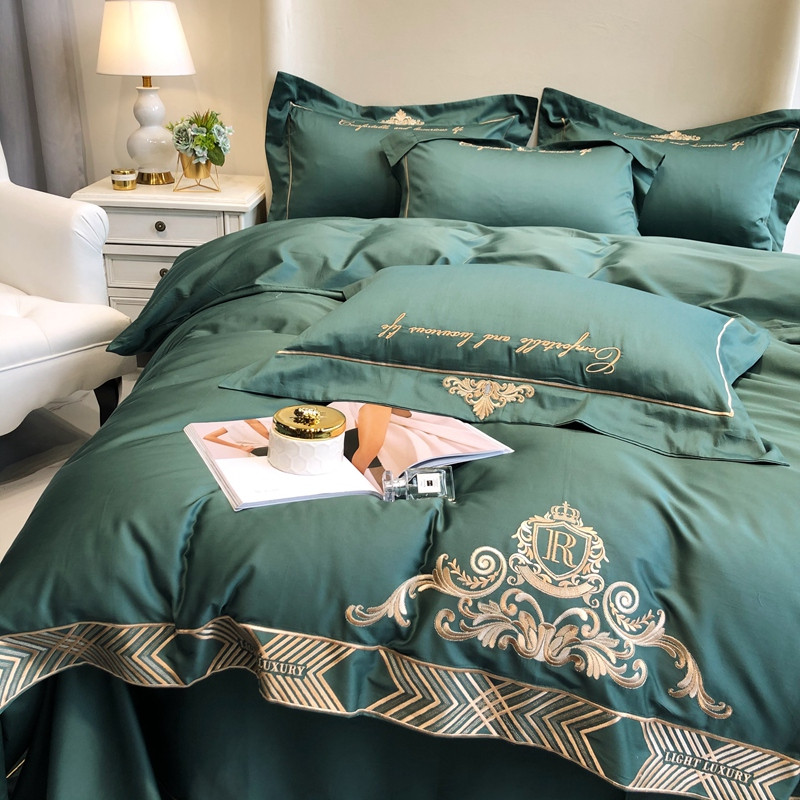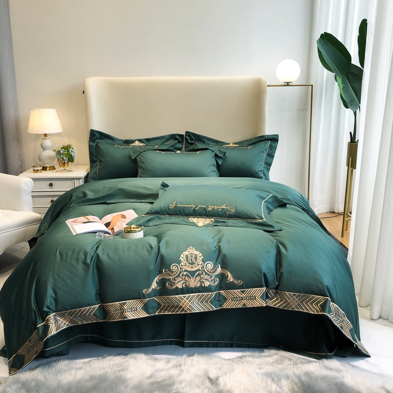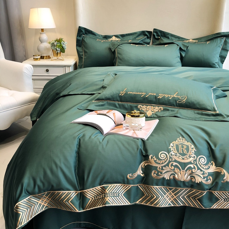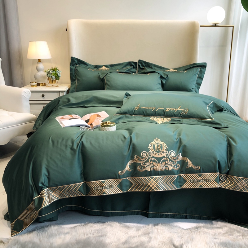 馨蕊家居 202160s双股埃及长绒棉维尼亚系列四件套翡翠绿