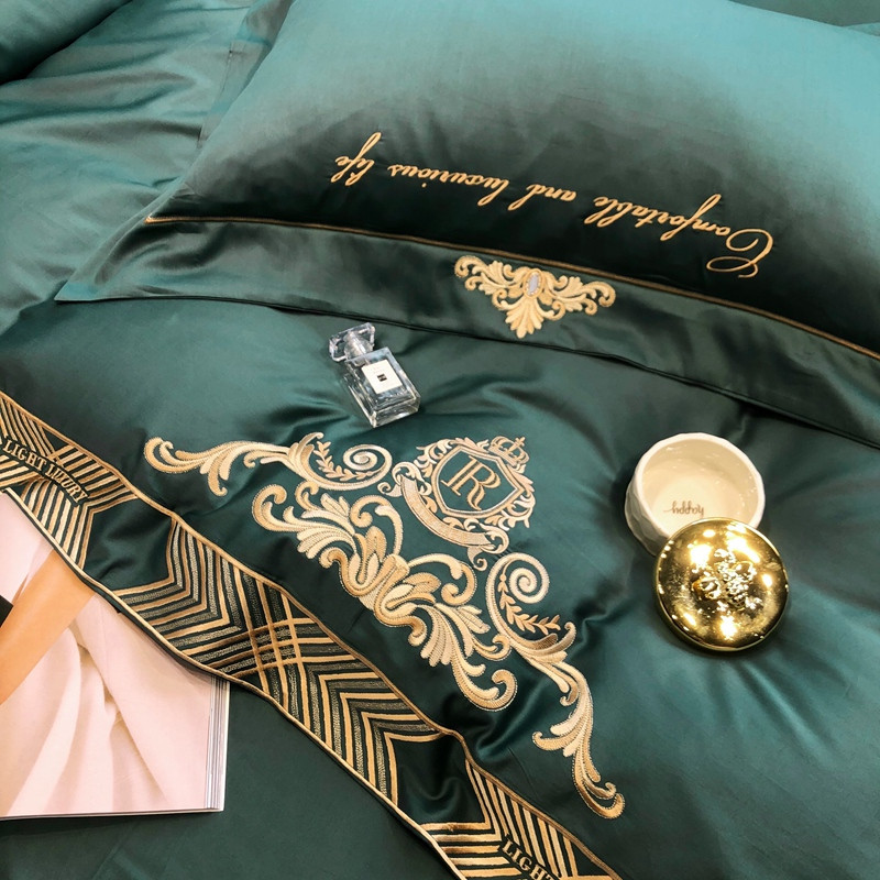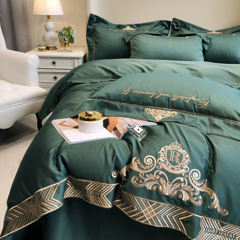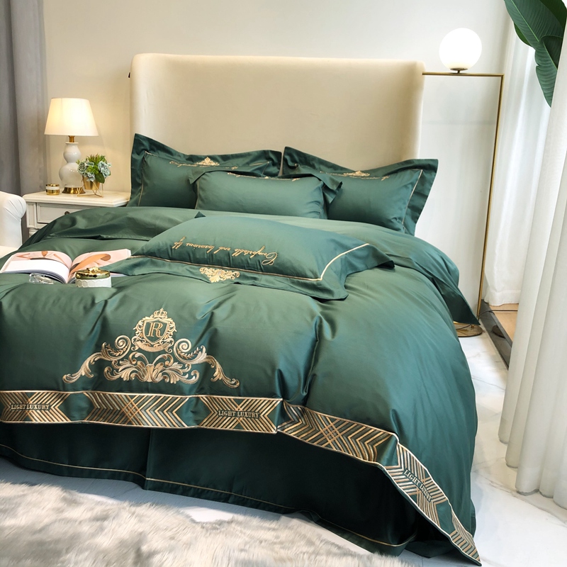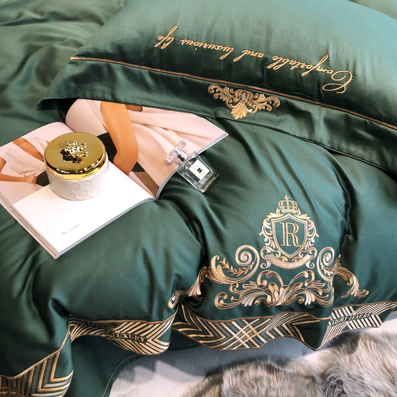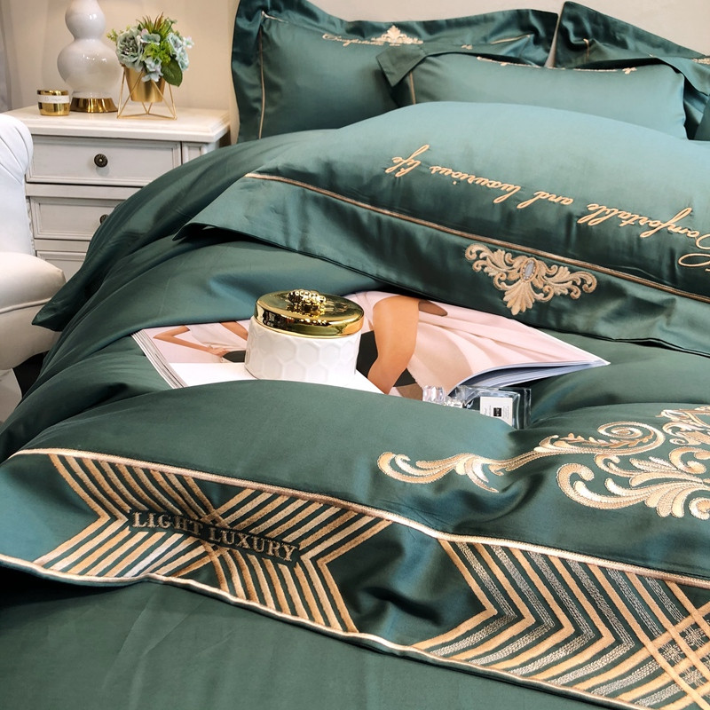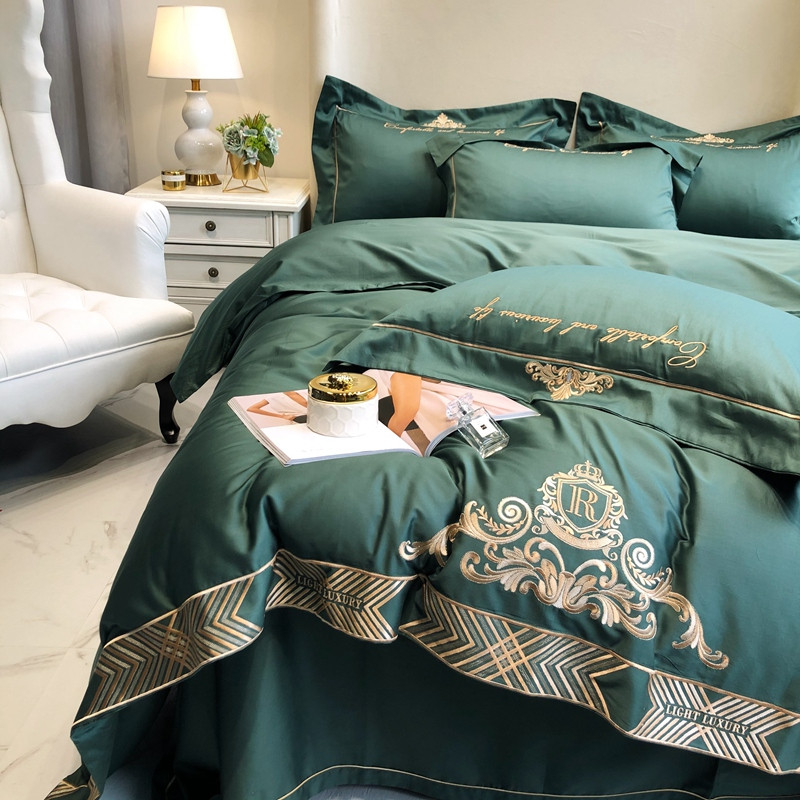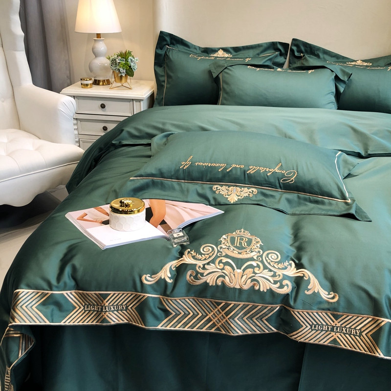馨蕊家居 202160s双股埃及长绒棉维尼亚系列四件套翡翠绿
