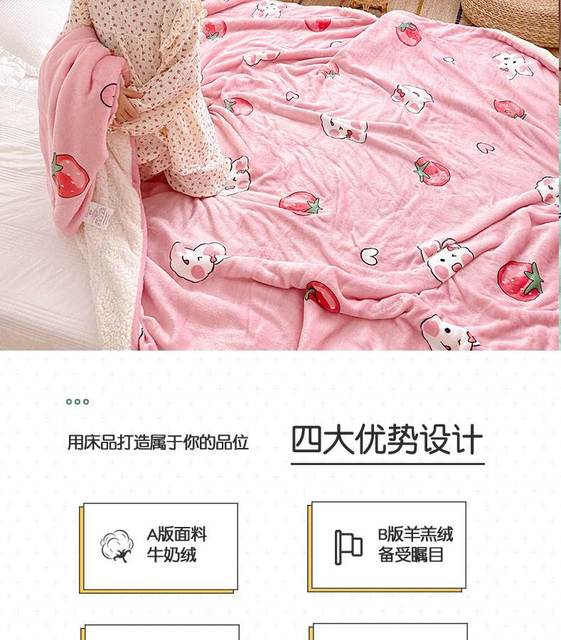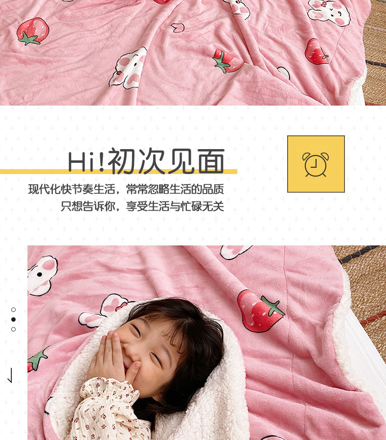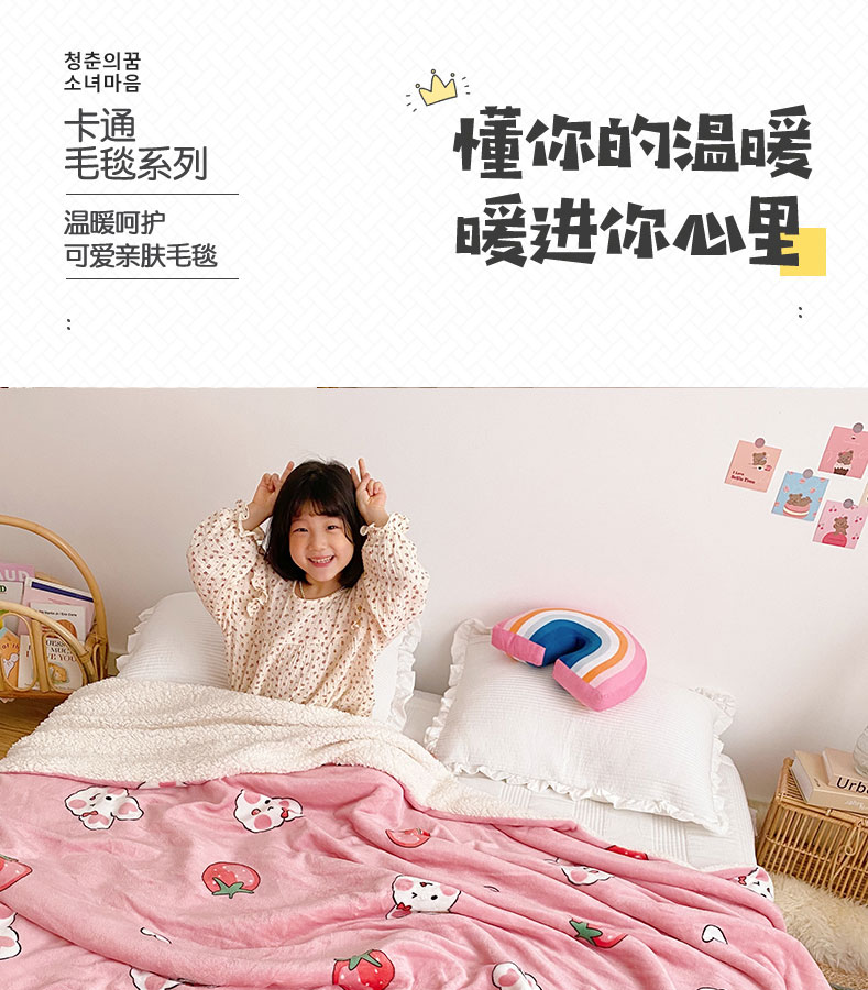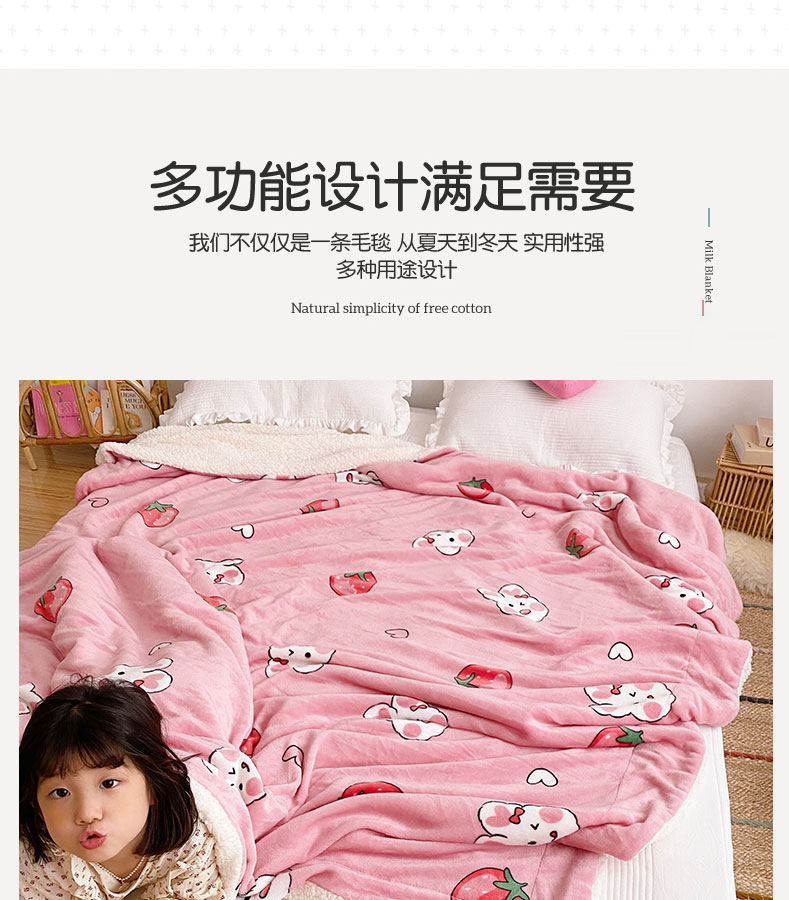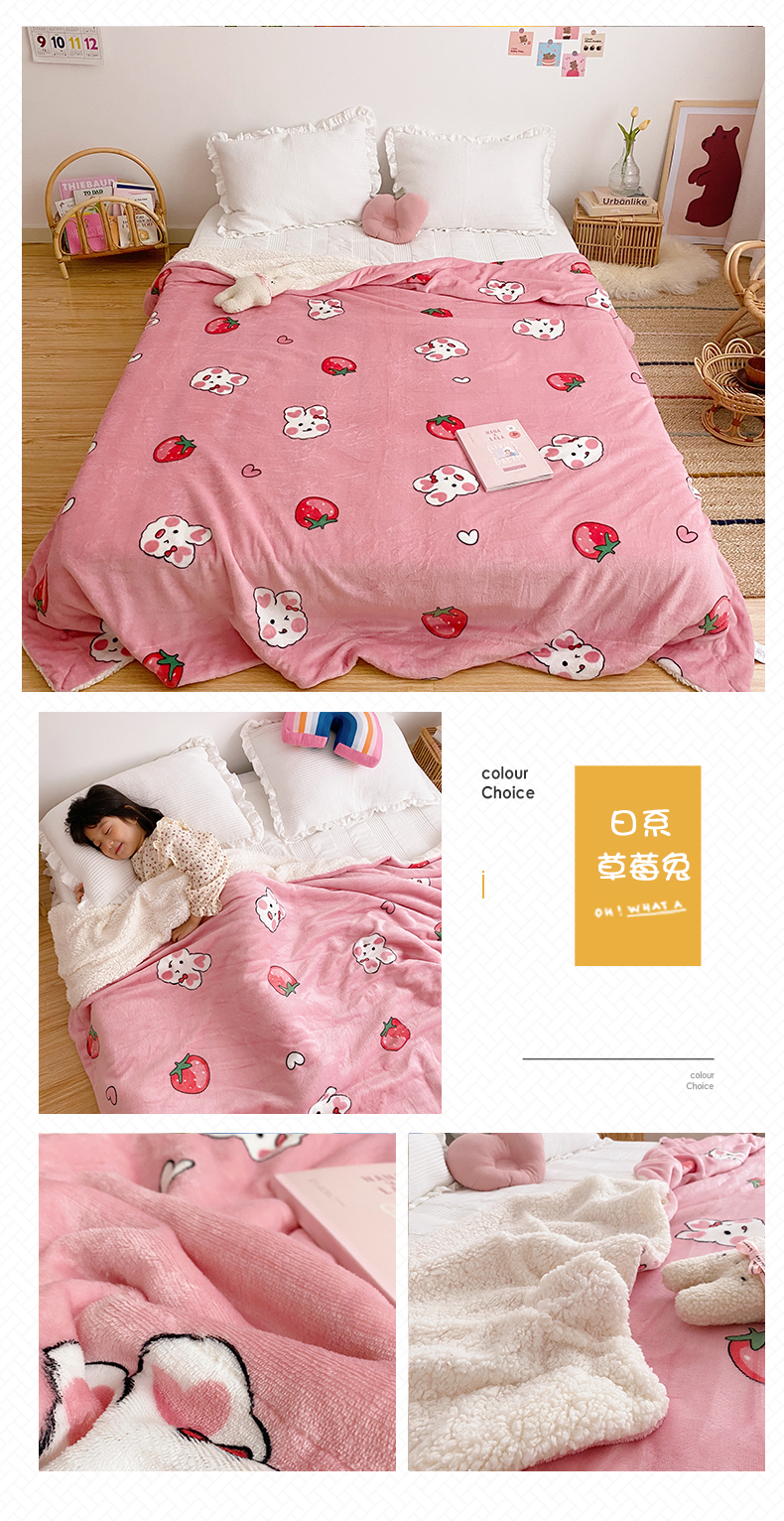商品名称:川悦生活2020新款羊羔绒毯子卡通亲肤牛奶绒毛毯 日系草莓兔