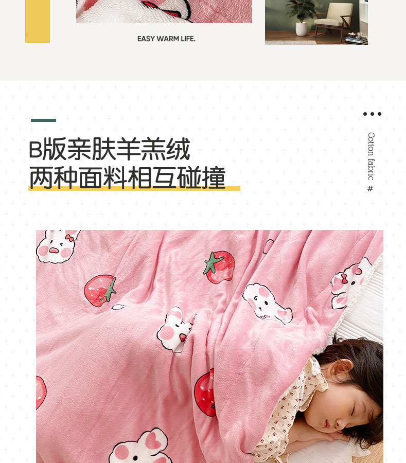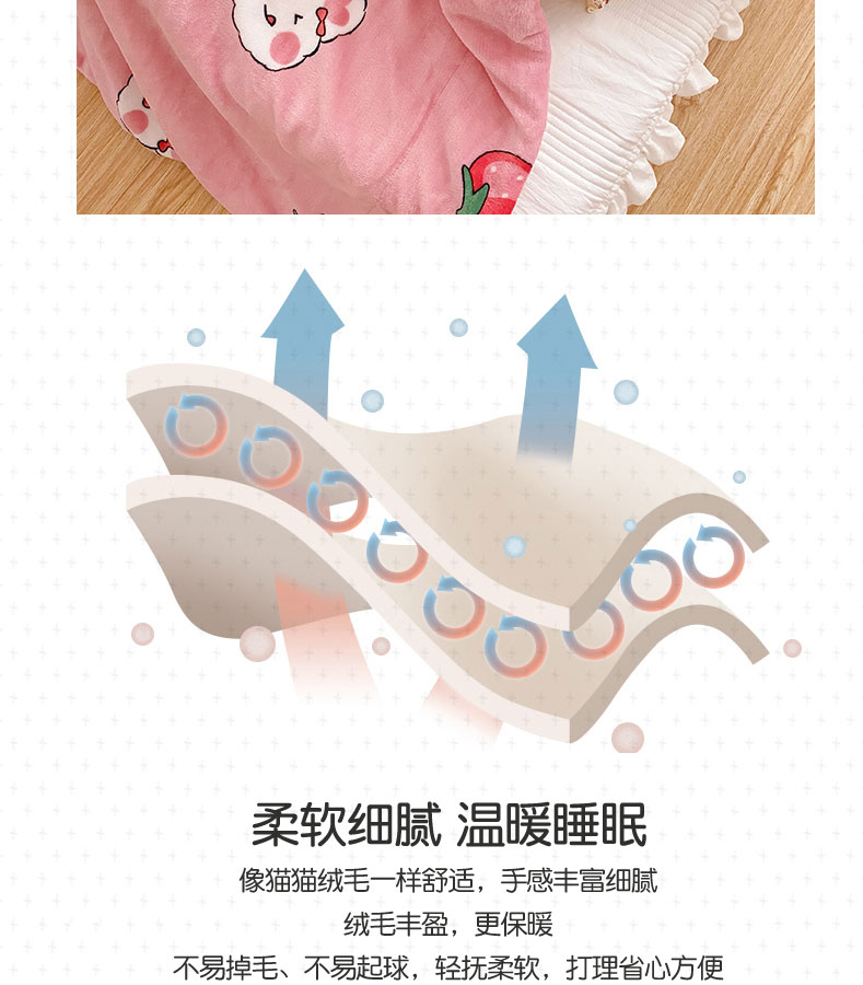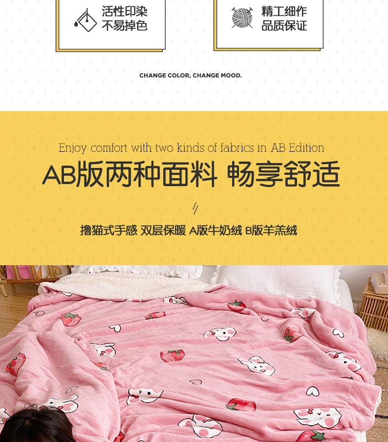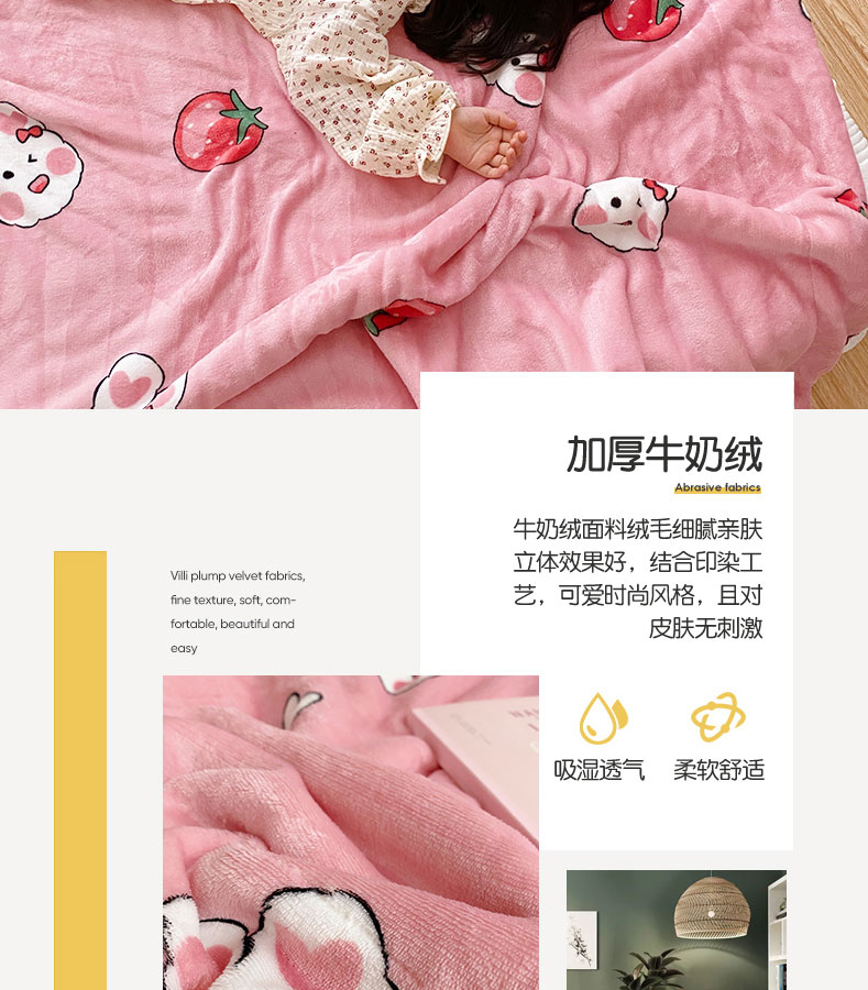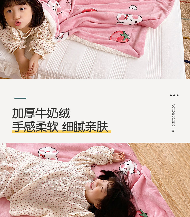 商品名称:川悦生活2020新款羊羔绒毯子卡通亲肤牛奶绒毛毯 日系草莓兔