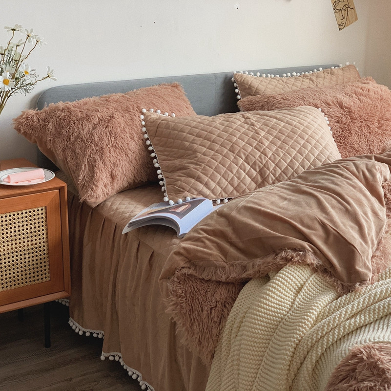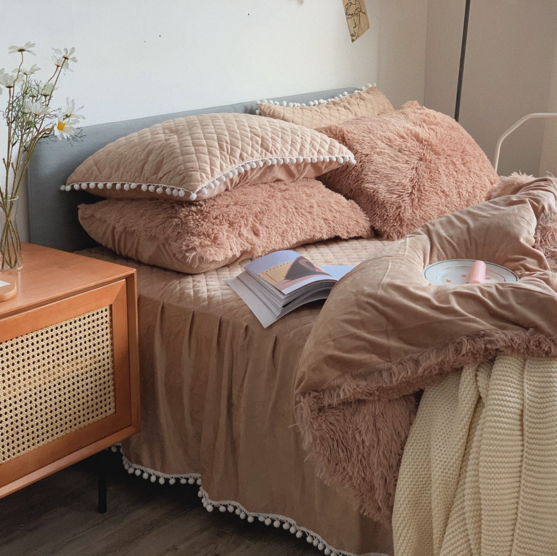 当前位置: 91家纺网 > 商品网购 > 床品套件 > 四件套 > 水貂绒四件套 > 嗨购 2020新款水貂绒床裙四件套 驼色