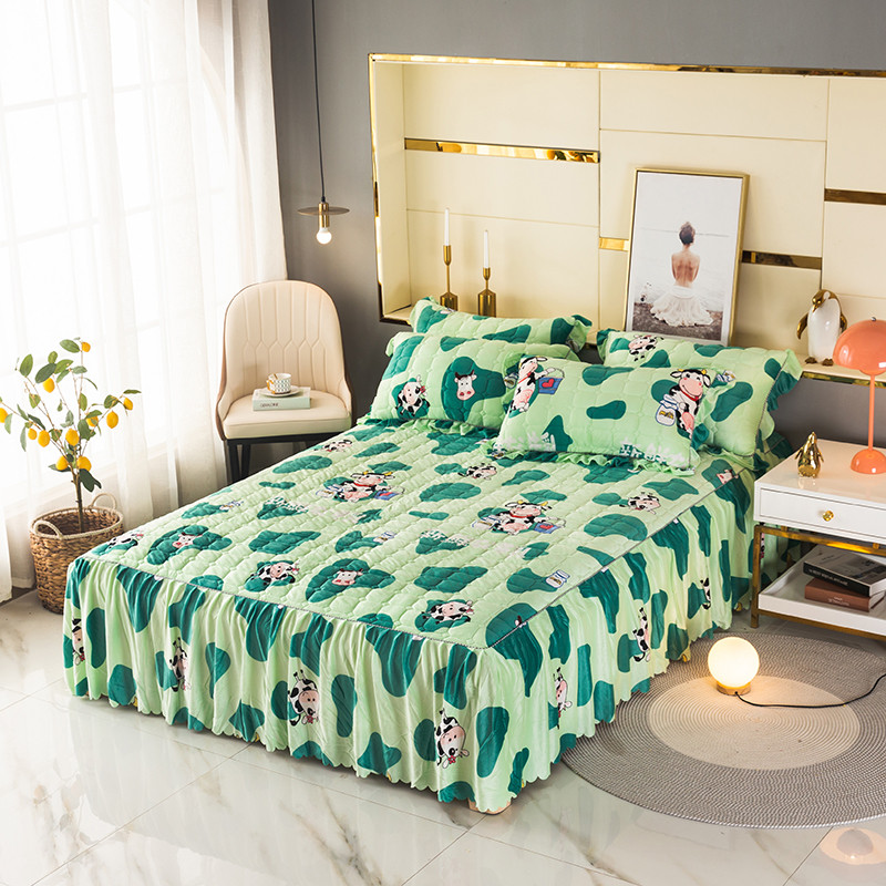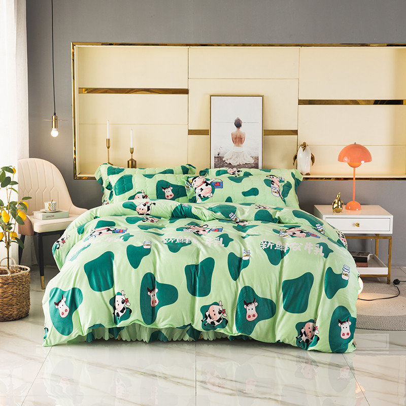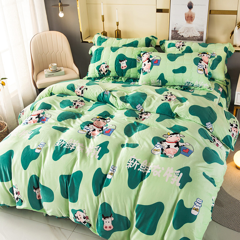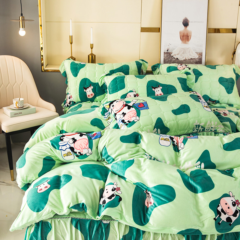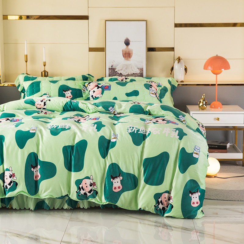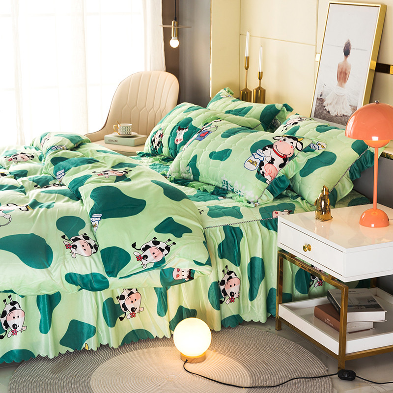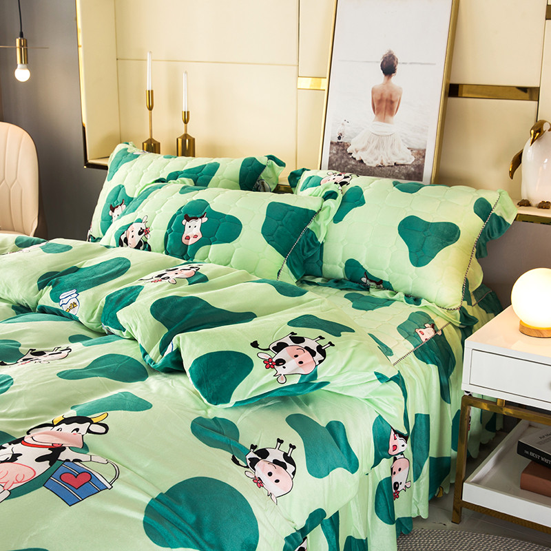 商品名称:纽缦 2020新款绒夹棉床裙四件套 奶牛块
