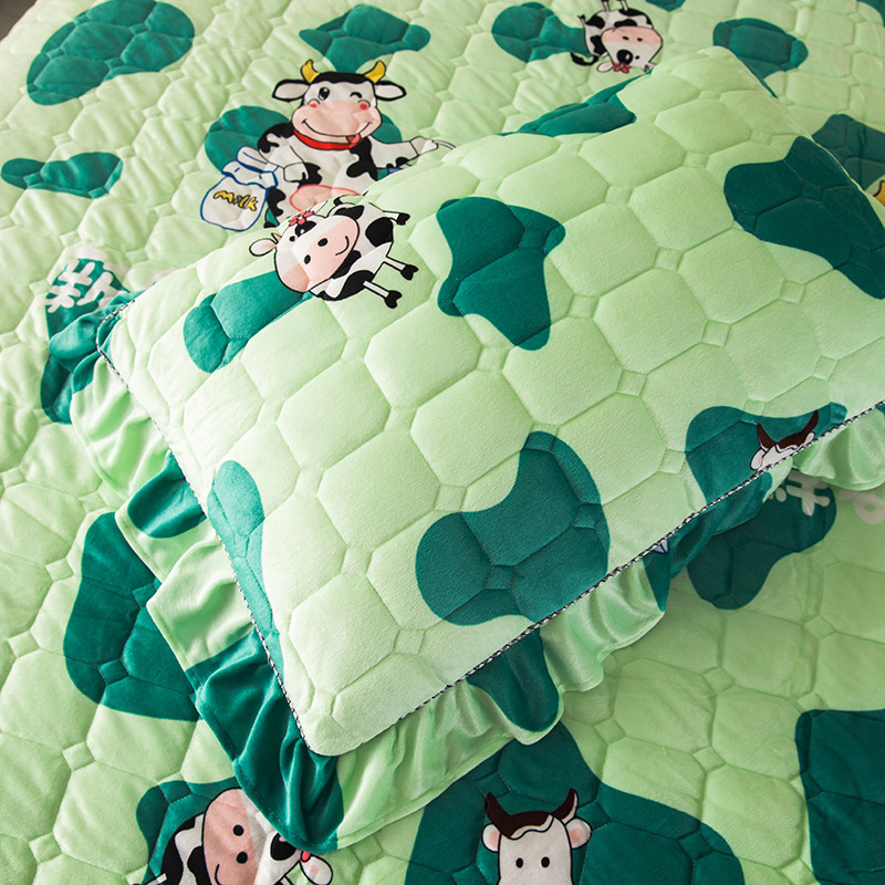 纽缦 2020新款绒夹棉床裙四件套 奶牛块