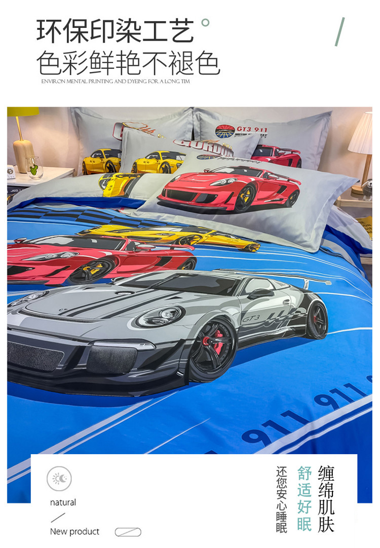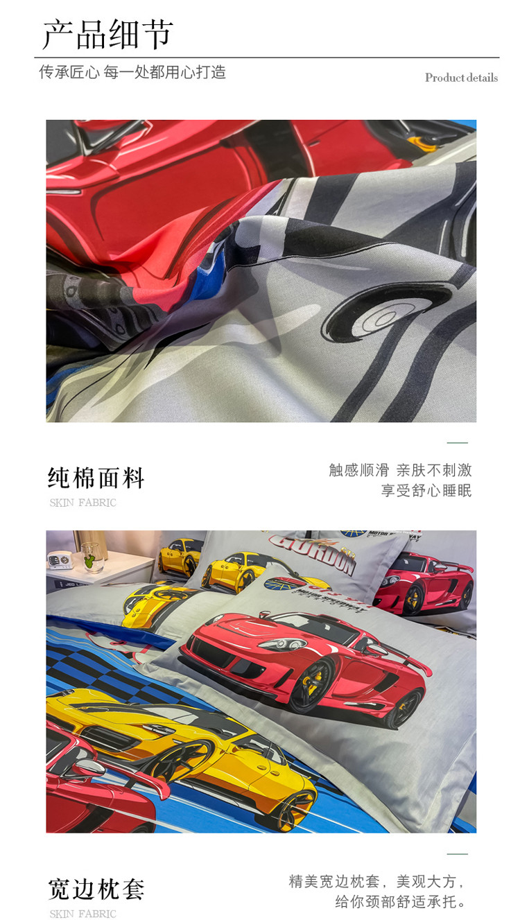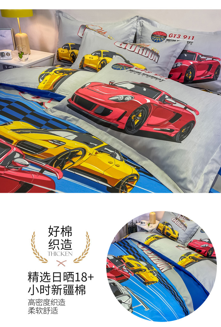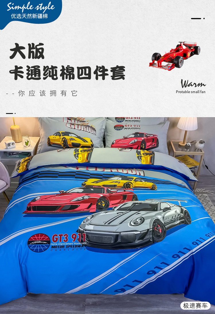 金爱家 2021新款13372大版全棉卡通四件套 极速赛车