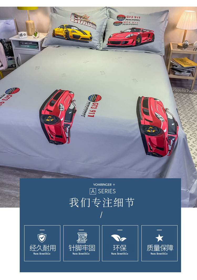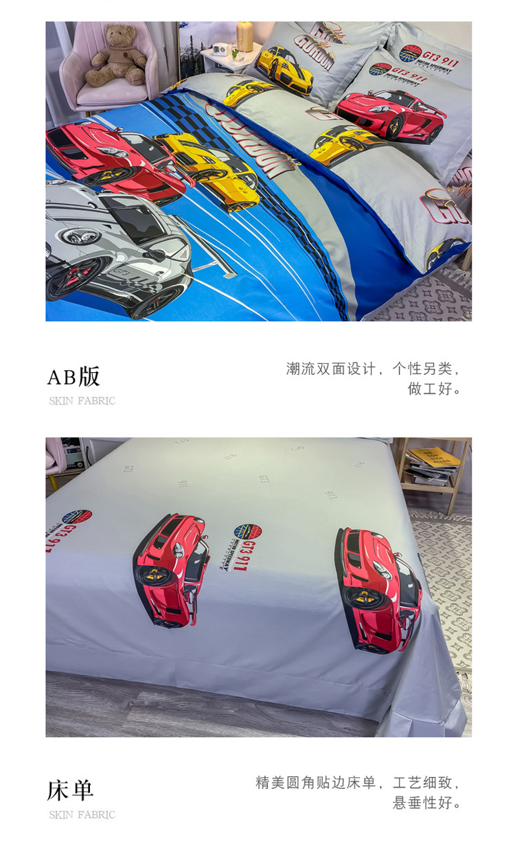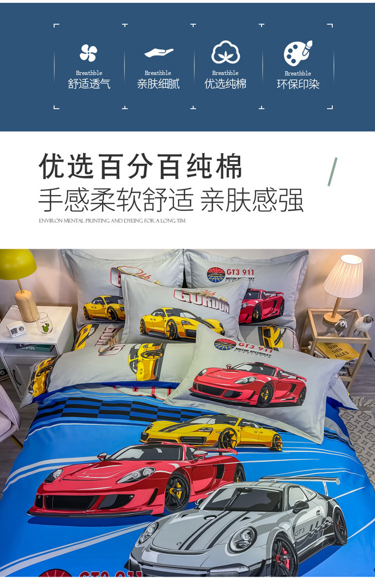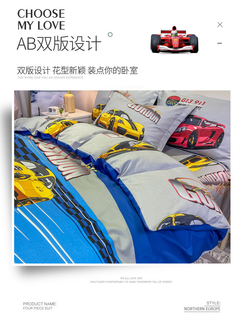 金爱家 2021新款13372大版全棉卡通四件套 极速赛车