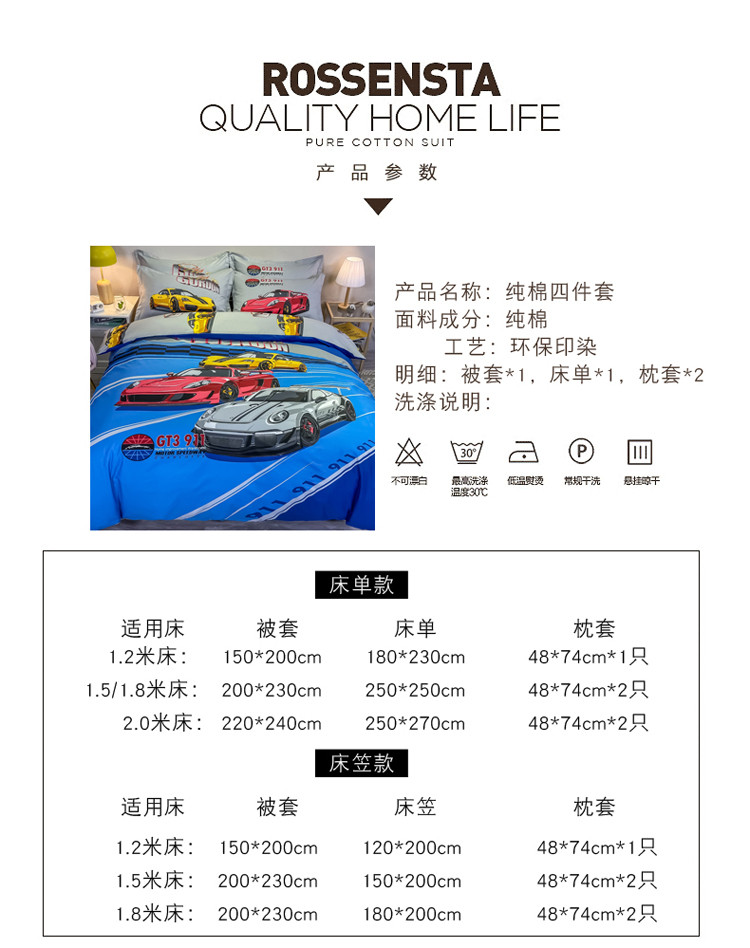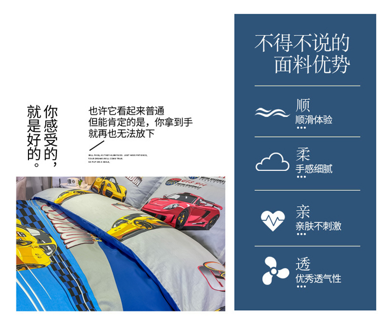 商品名称:金爱家 2021新款13372大版全棉卡通四件套 极速赛车