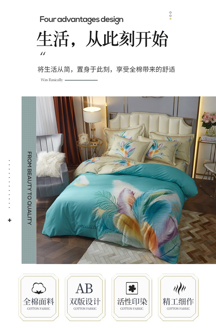 启航 2021年爆款全棉春夏新品四件套 羽翼纷飞绿