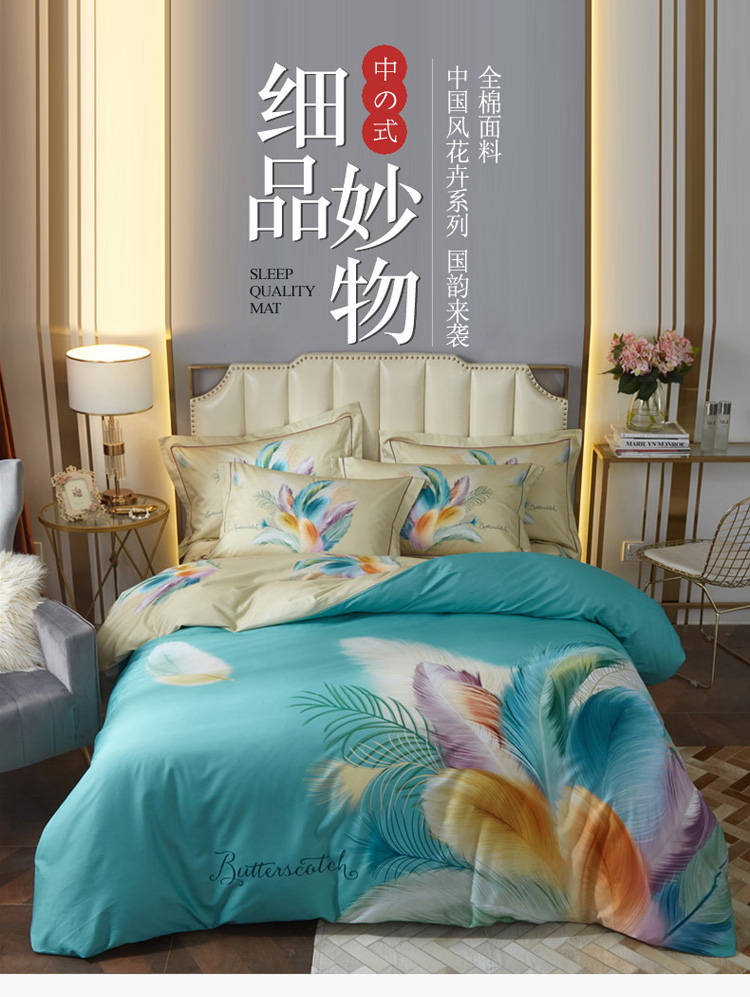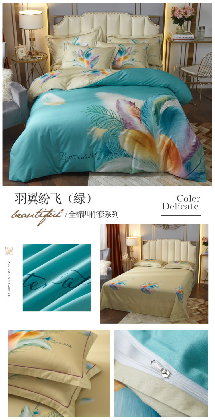 商品名称:启航 2021年爆款全棉春夏新品四件套 羽翼纷飞绿