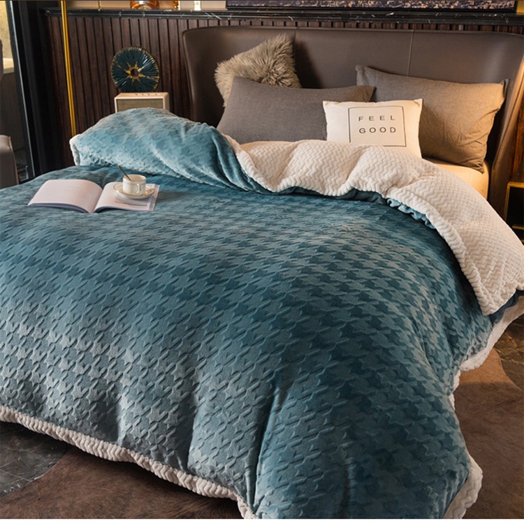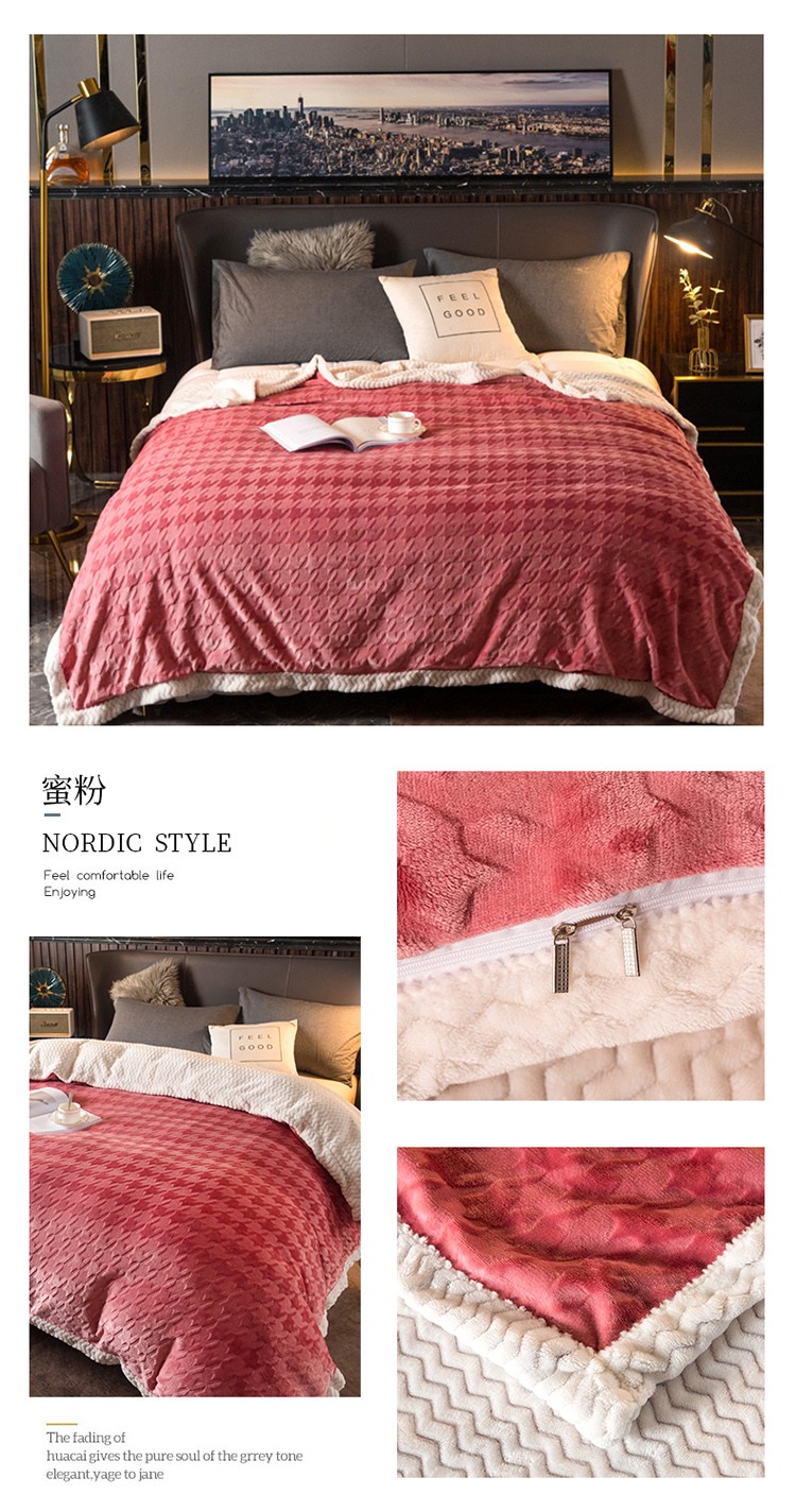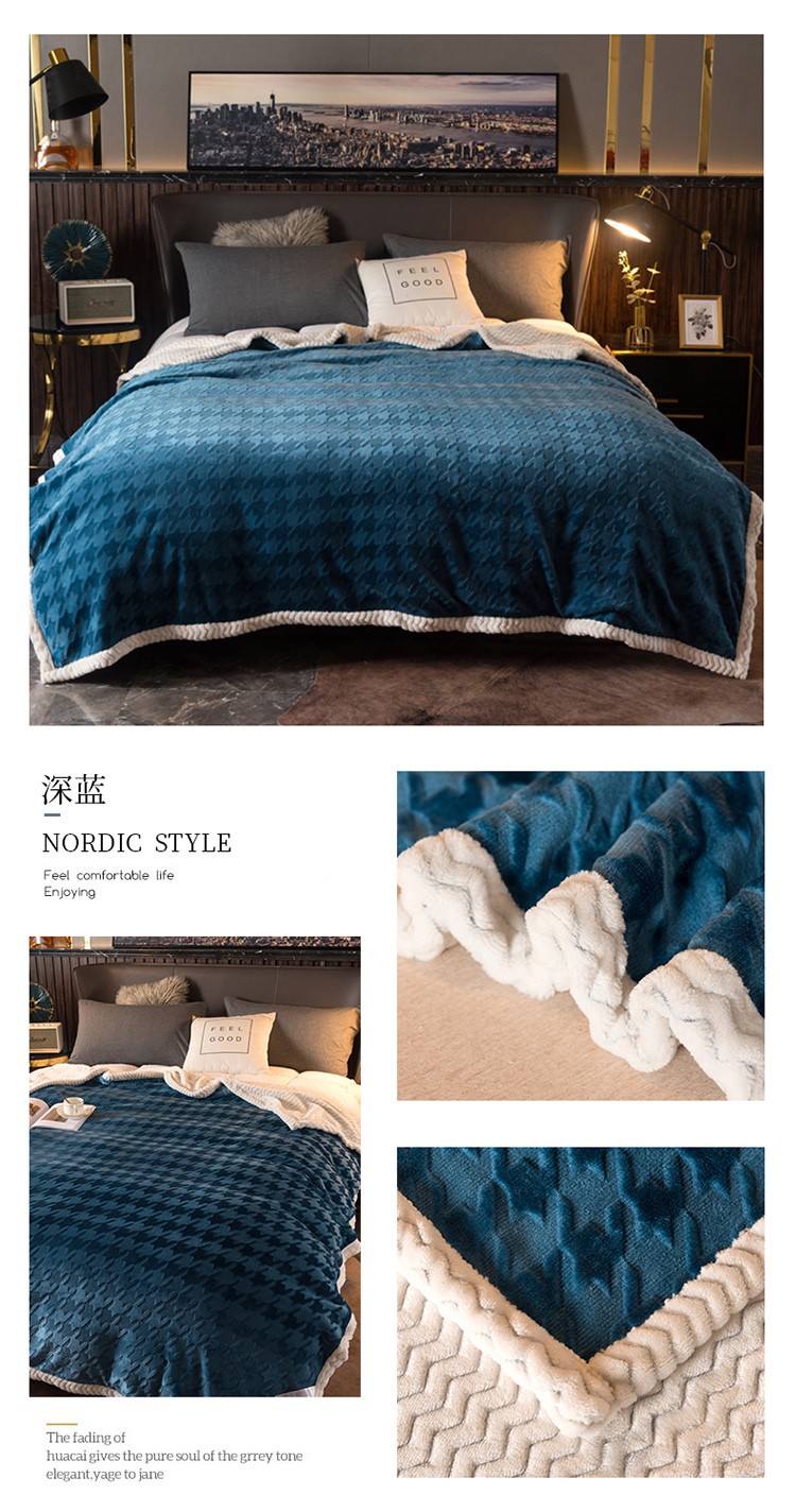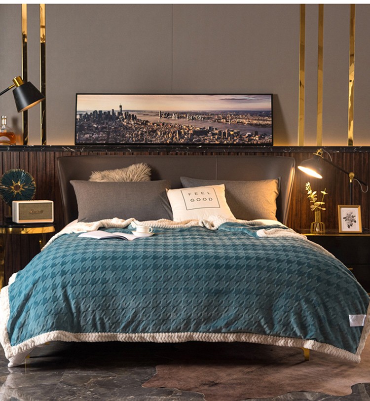 (总)网客 2024新款千鸟格立体雕花绒多用毯