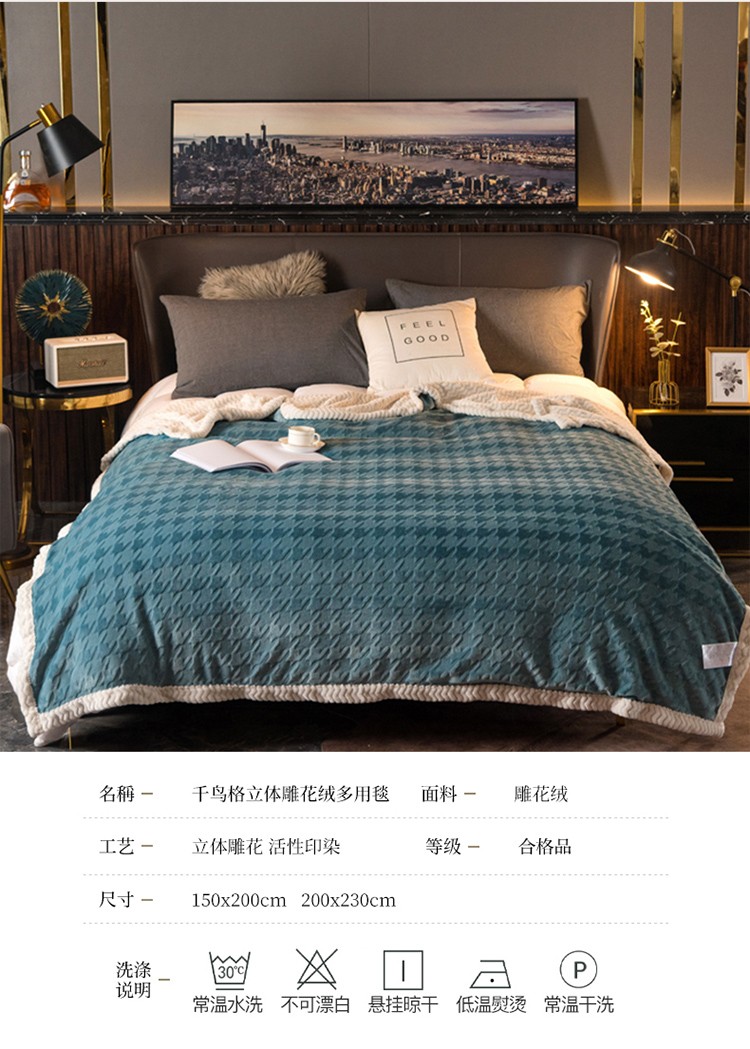 商品名称:(总)网客 2024新款千鸟格立体雕花绒多用毯