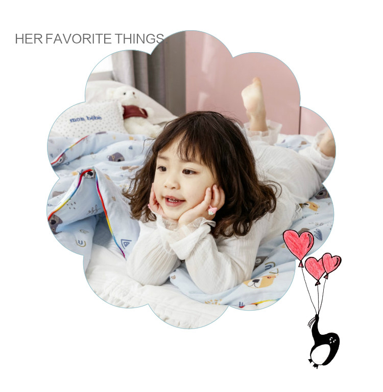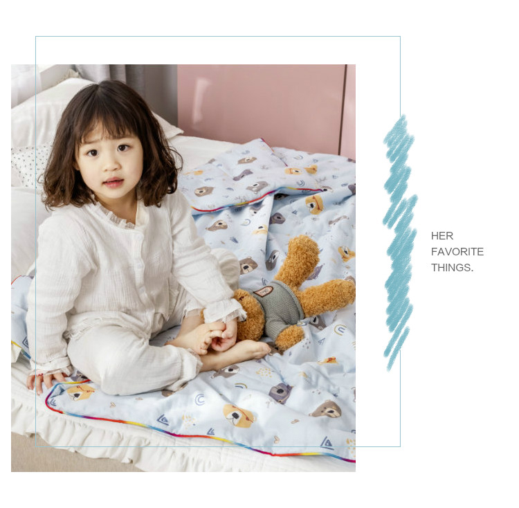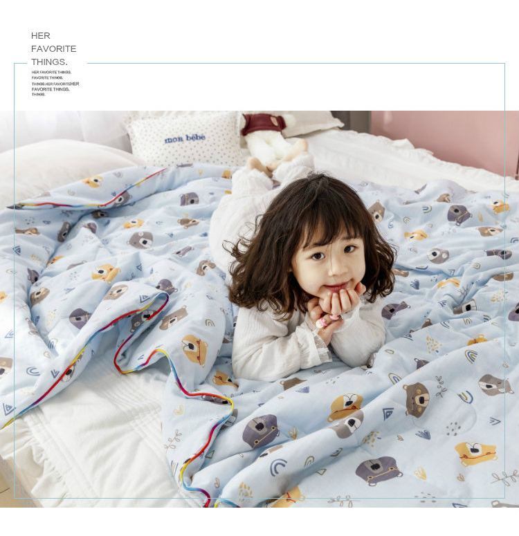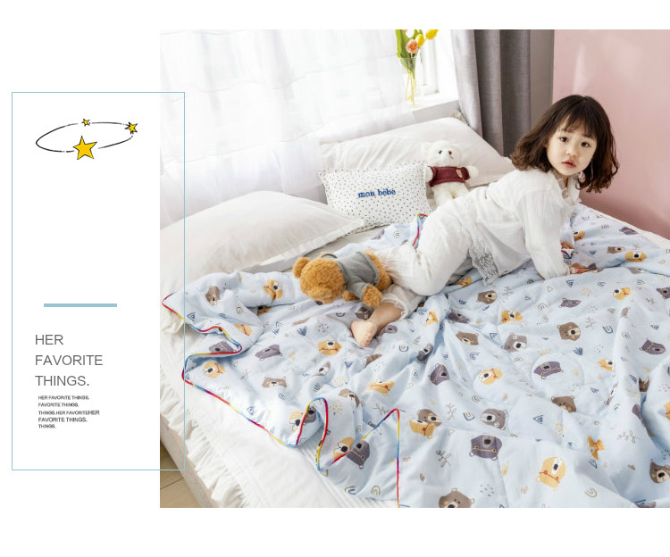 十九色 2024新款华夫格纱全棉儿童夏被 小熊蓝