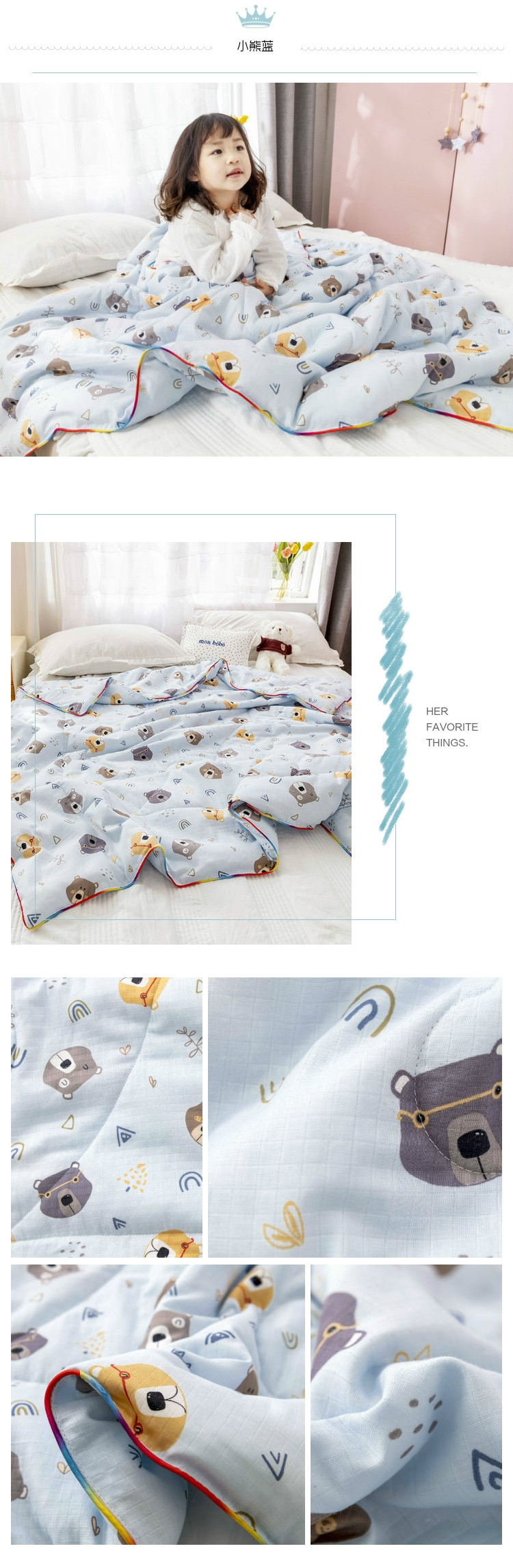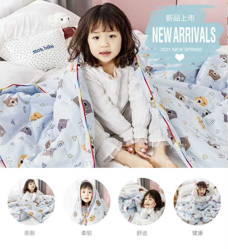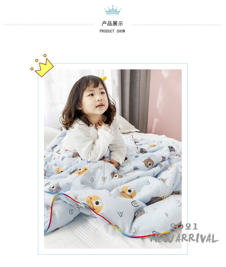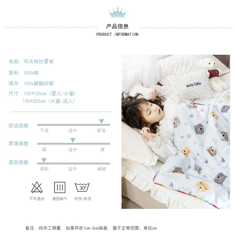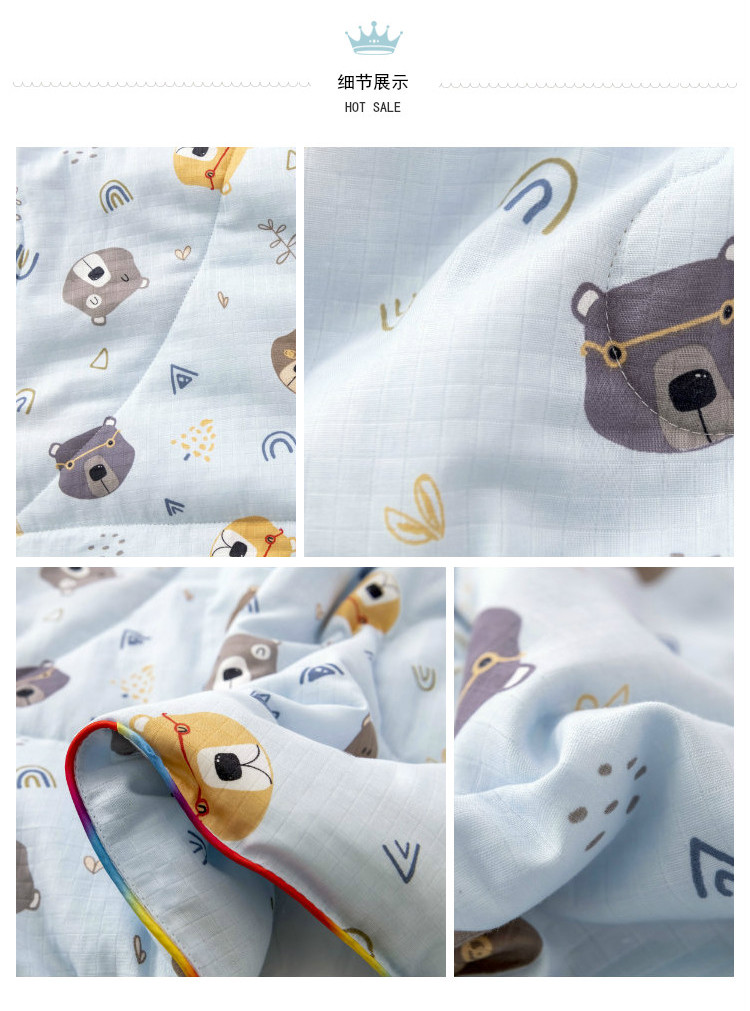 商品名称:十九色 2024新款华夫格纱全棉儿童夏被 小熊蓝