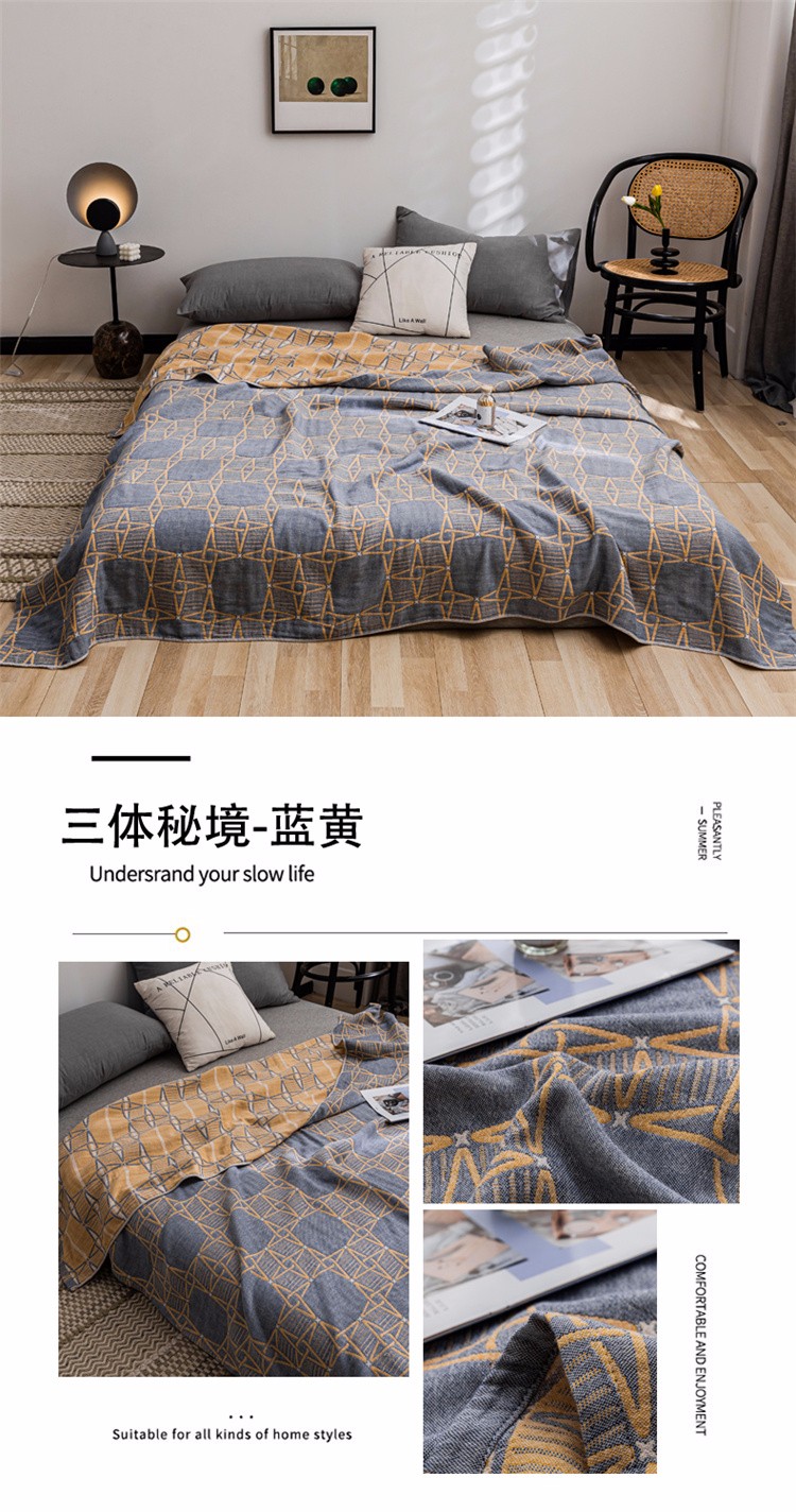 商品名称:朴尔 2021新款主推三层水洗棉纱布毛巾被三体秘境-蓝黄