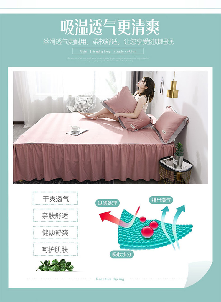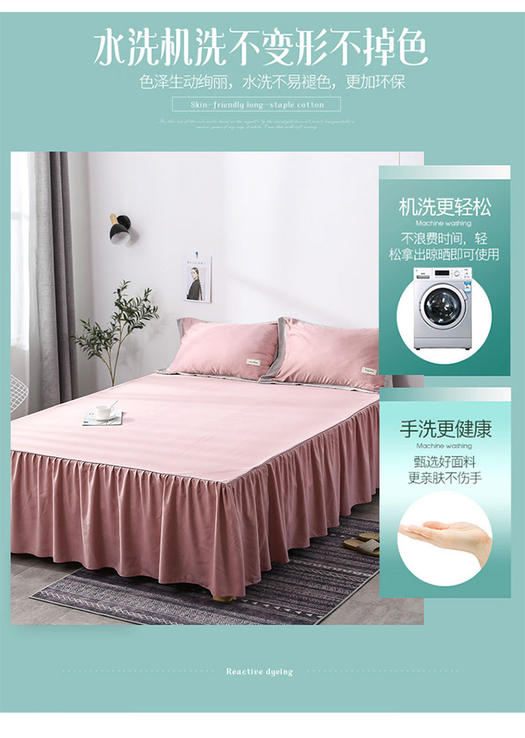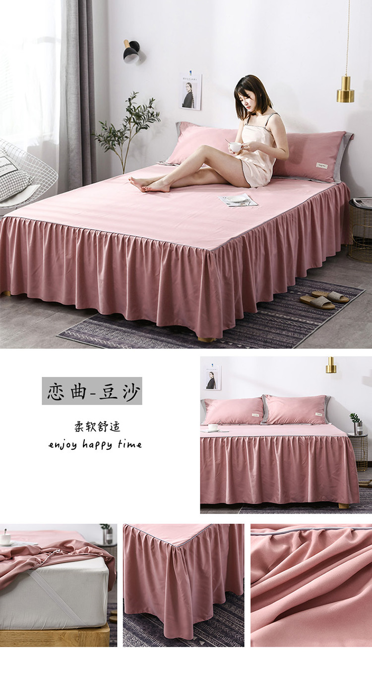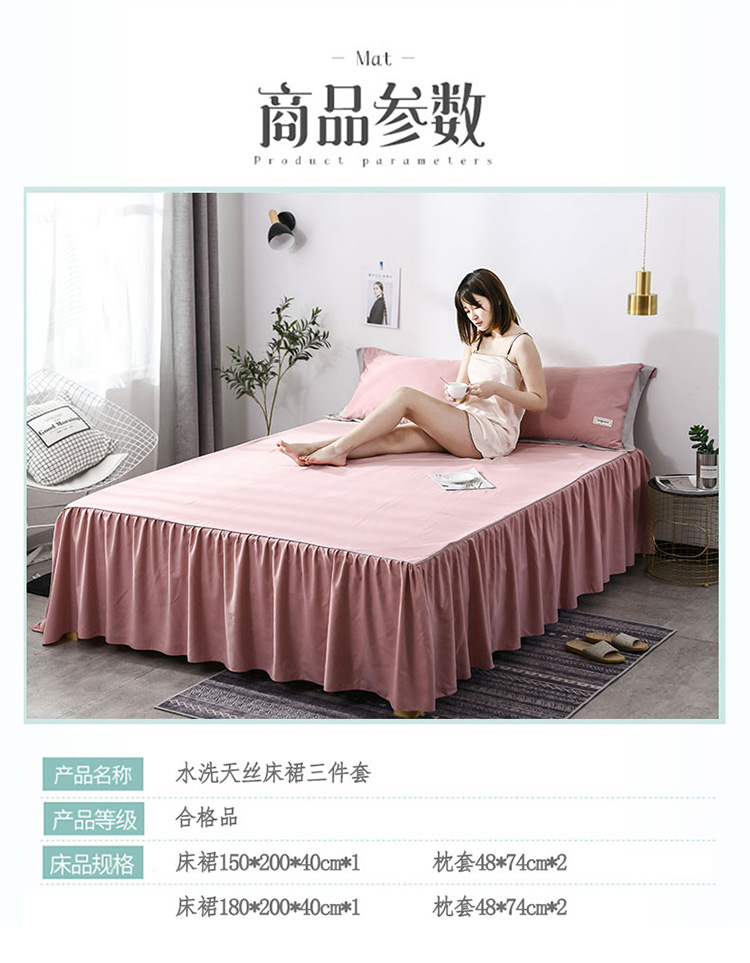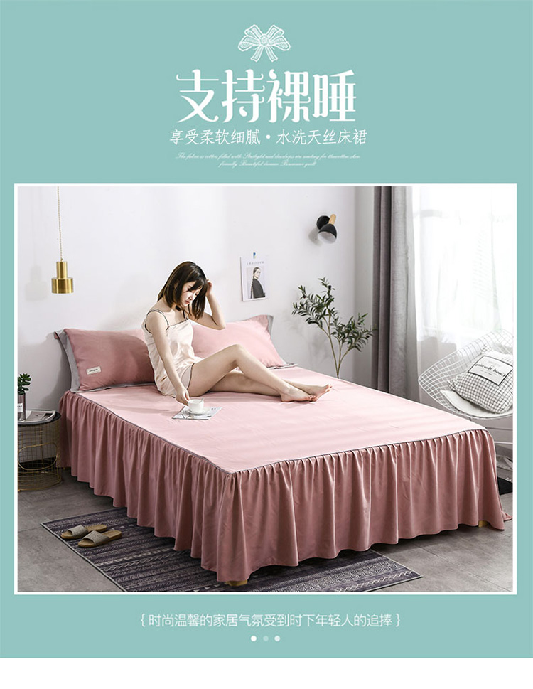 商品名称:意尚风情 2021新款水洗天丝床裙三件套 恋曲-豆沙