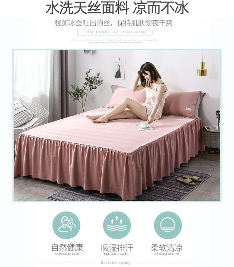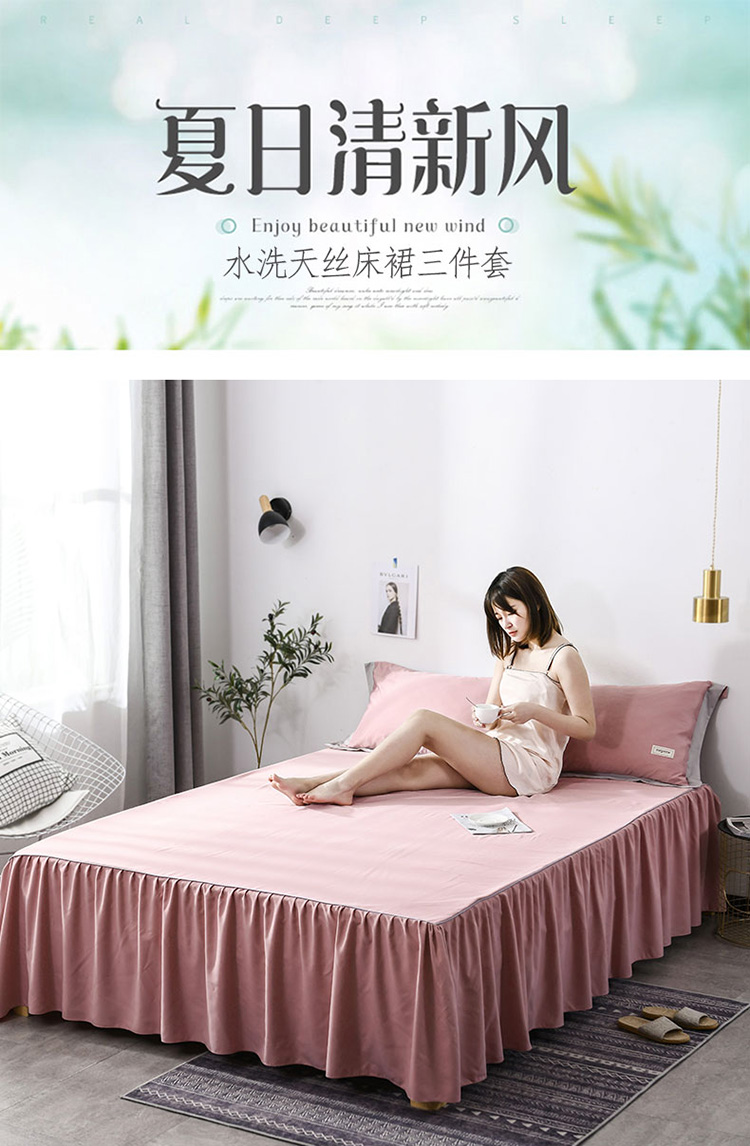 意尚风情 2021新款水洗天丝床裙三件套 恋曲-豆沙