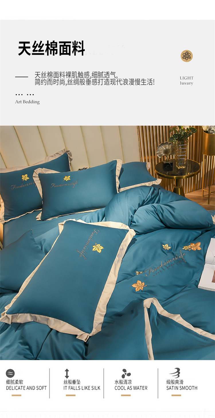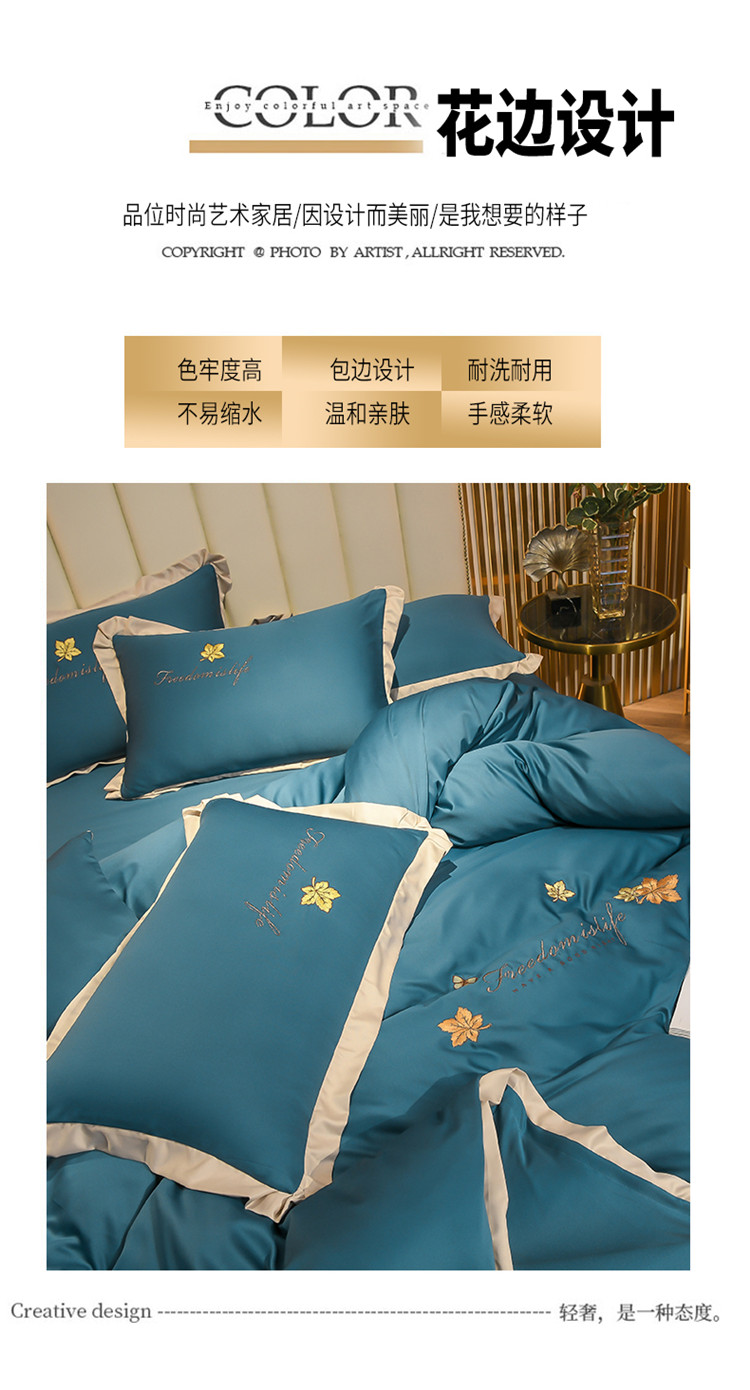 (总)金米诺 2024新款磨毛四件套刺绣系列,豆沙,翡翠绿,抹茶绿,浅姜黄,深蓝,烟灰,烟灰紫