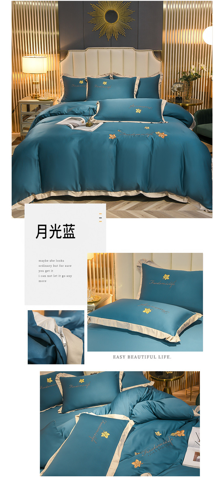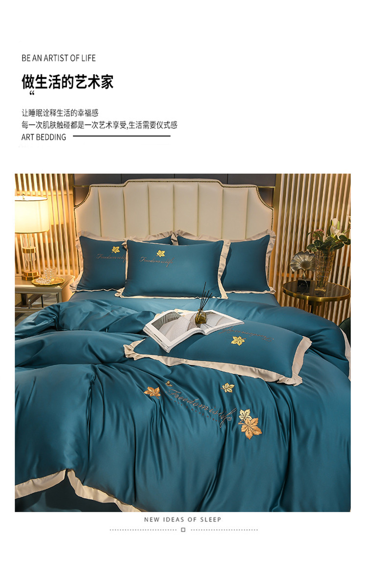商品名称:金米诺 2022新款水洗真丝花边款四件套 月光蓝