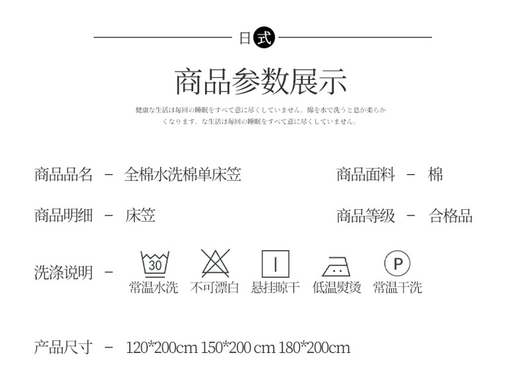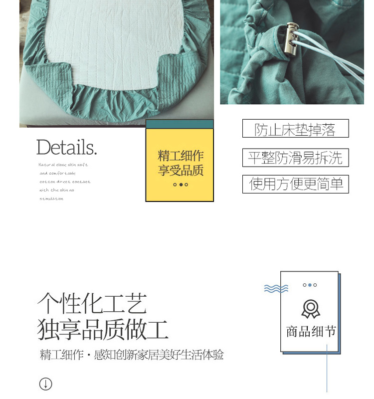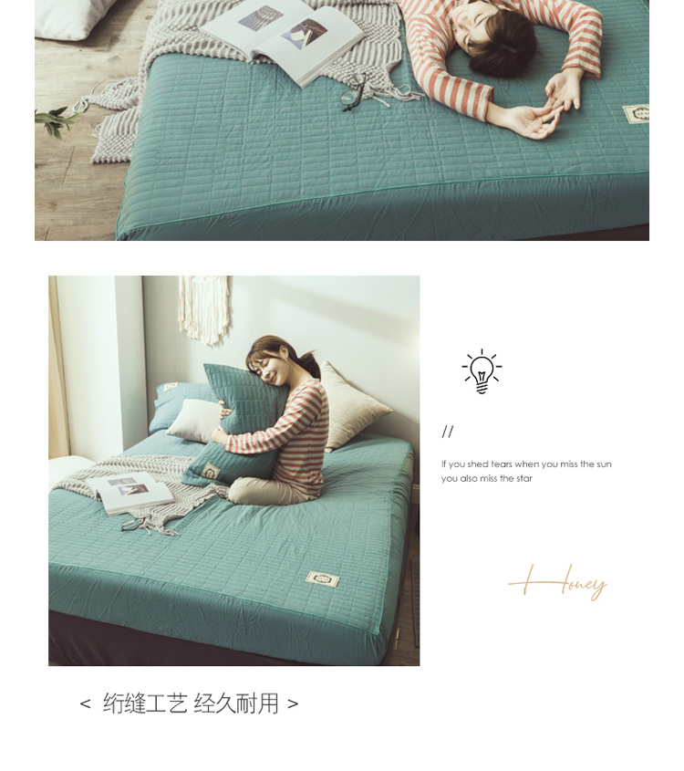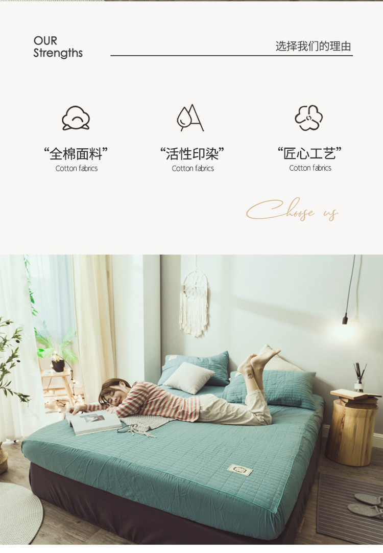 商品名称:菊上 2021新款日式-水洗棉床笠(全棉夹棉款) 青玄