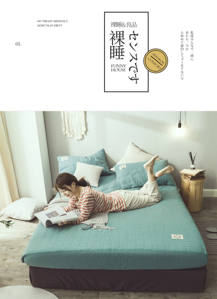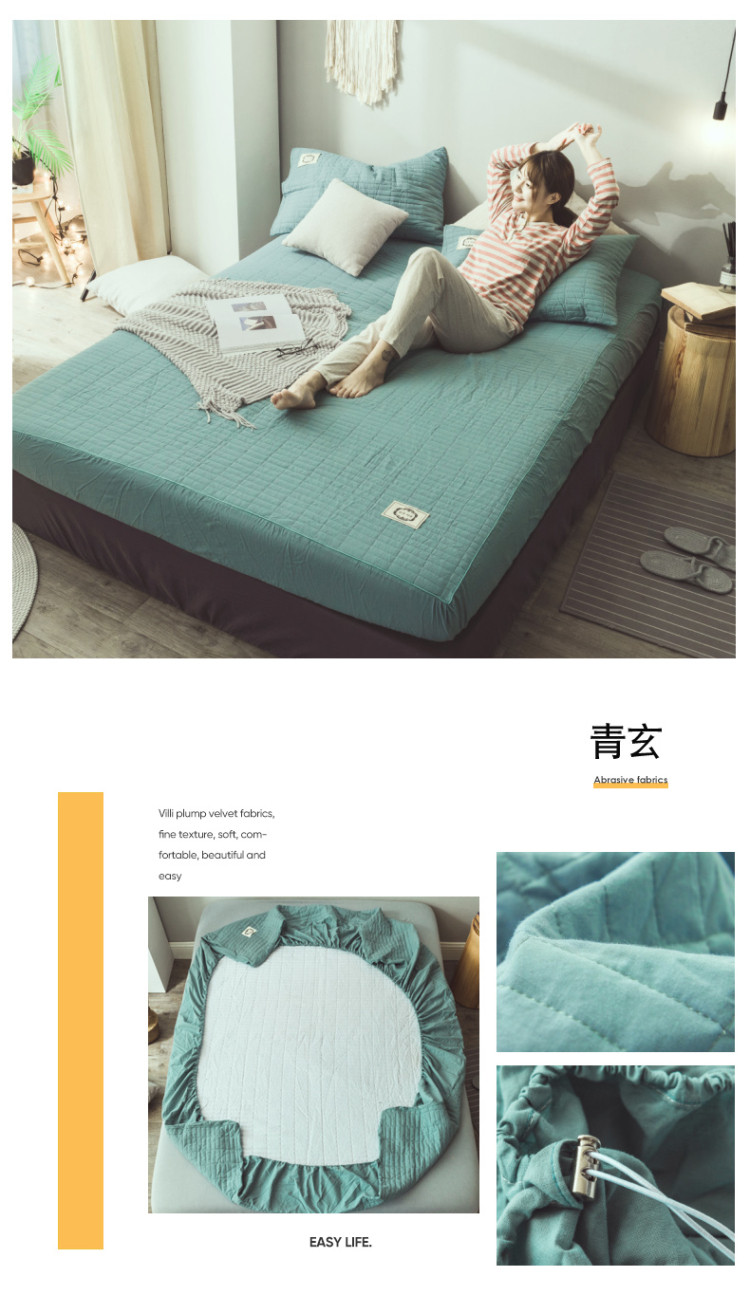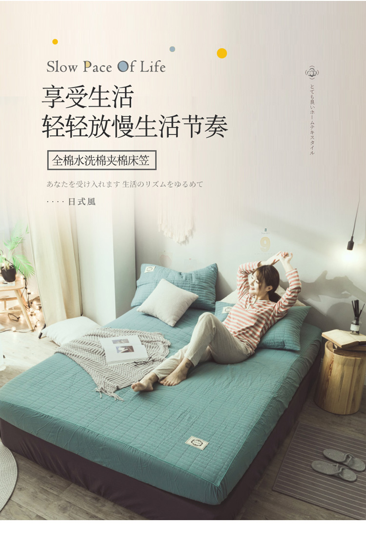 菊上 2021新款日式-水洗棉床笠(全棉夹棉款) 青玄