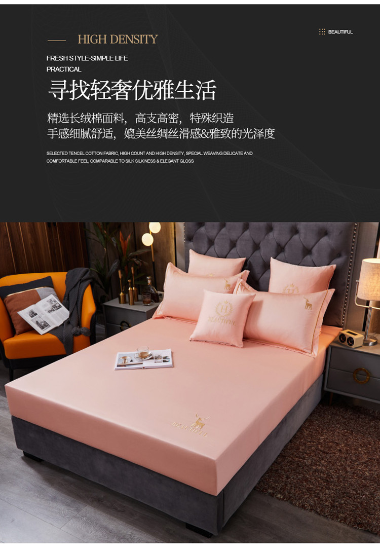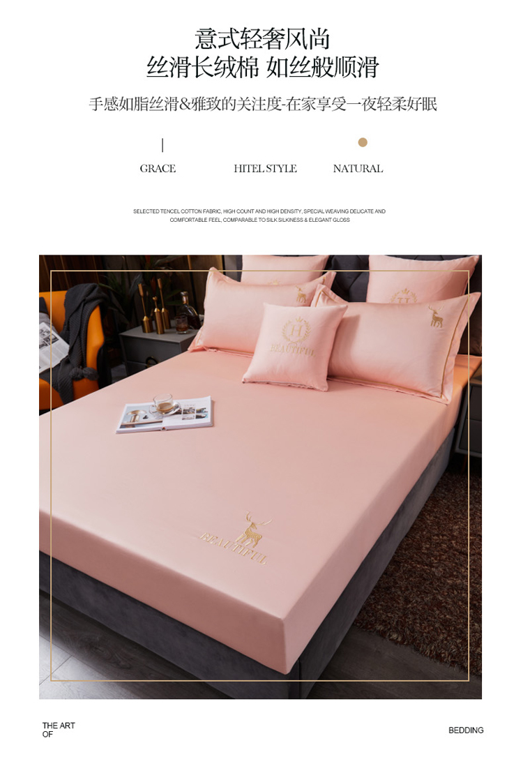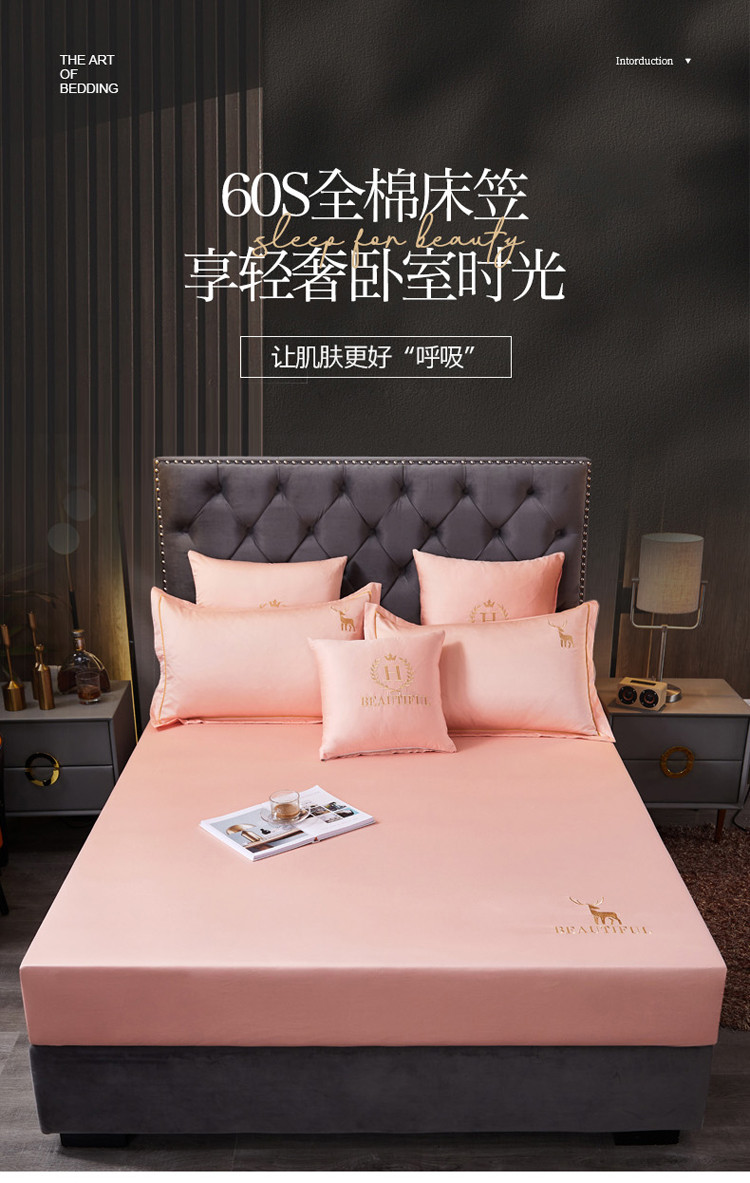 商品名称:菊上 2021新款60长绒棉-单品床笠(幸福鹿系列)玉粉